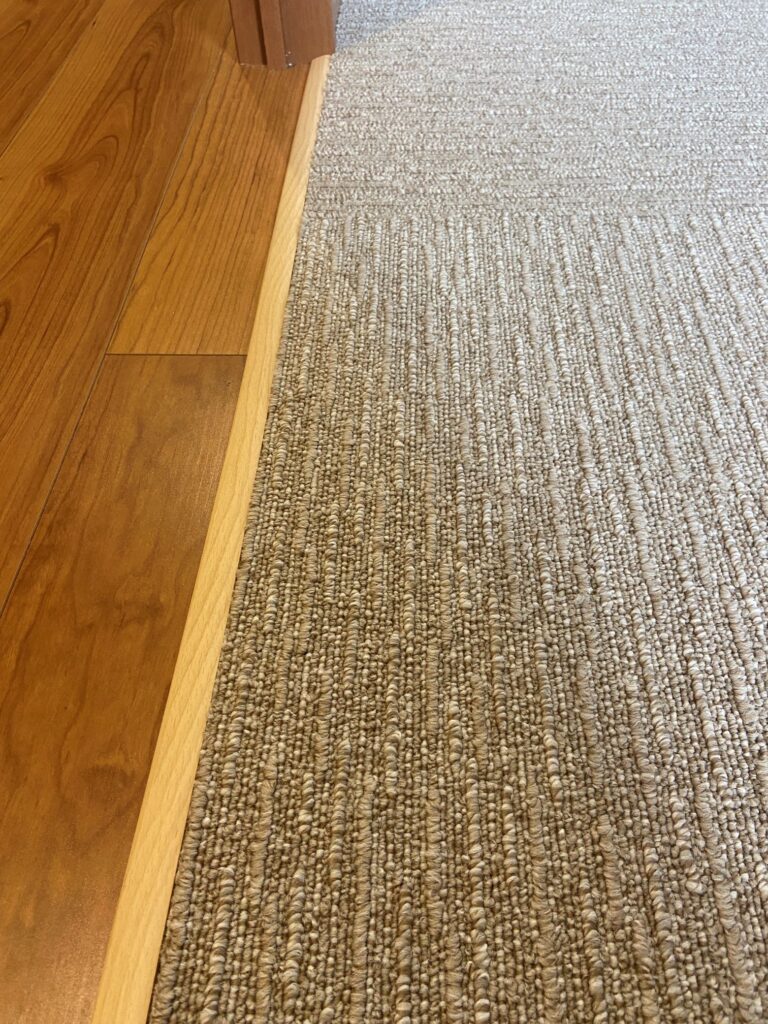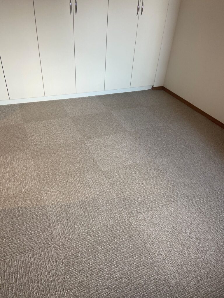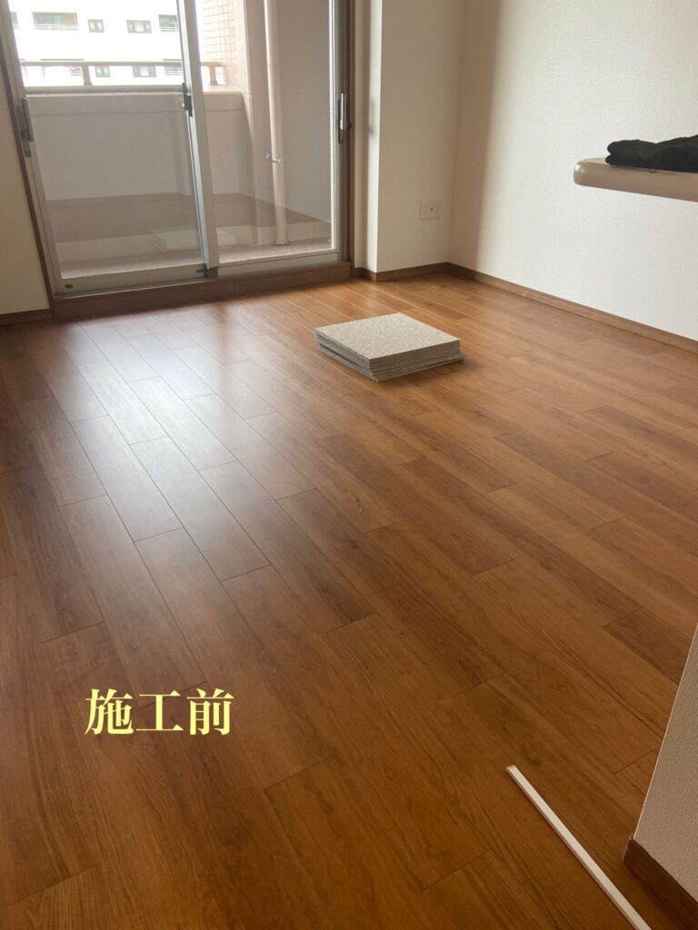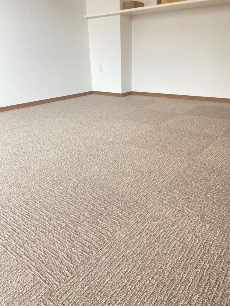 お引越しに伴いリビングと洋室のフローリングの床に接着剤いらずのタイルカーペットを施工させていただきました♪