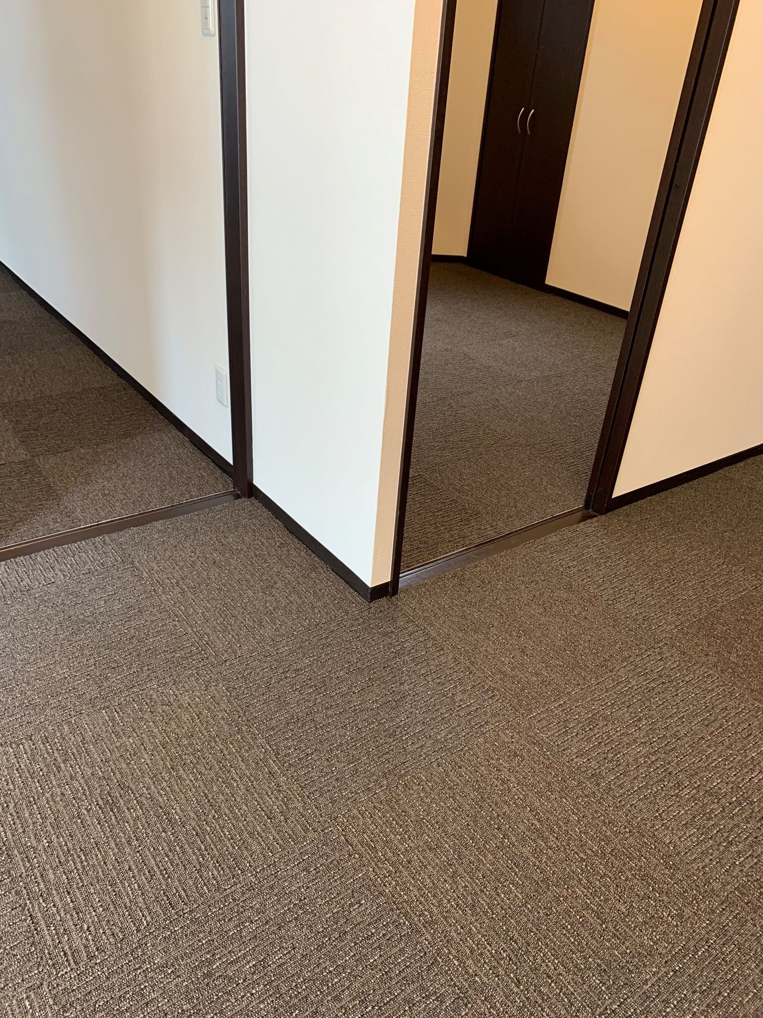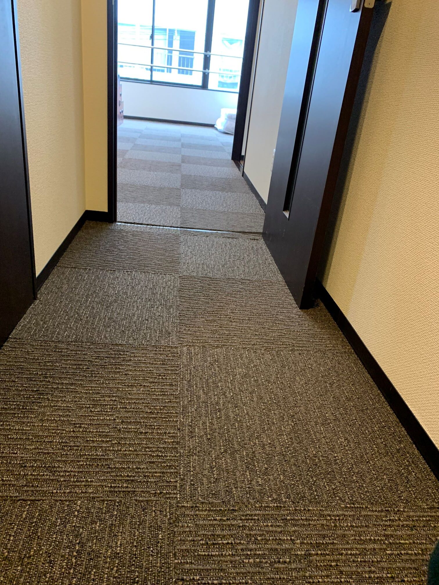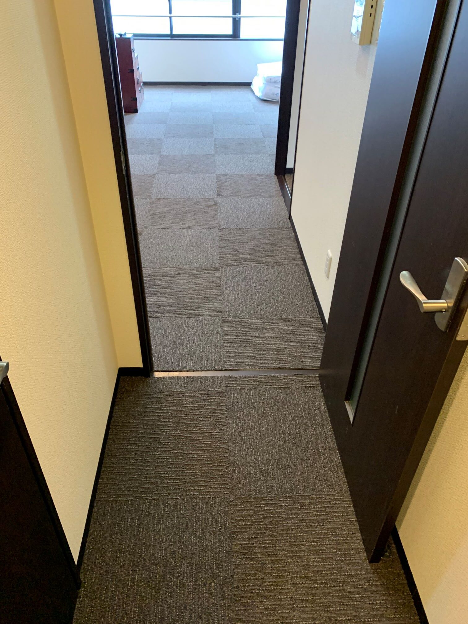 大阪市北区 S様邸 タイルカーペット施工例 フローリングの床に接着剤要らずのタイルカーペットを敷詰めにて施工させていただきました♪ 汚れたところだけいつでも外して洗えます。 ループに高低差がありナチュラルな雰囲気を演出! 東リ㈱ FF2102 約50㎡ 施工時間約2時間30分
