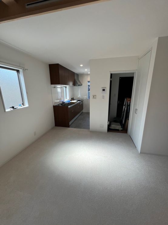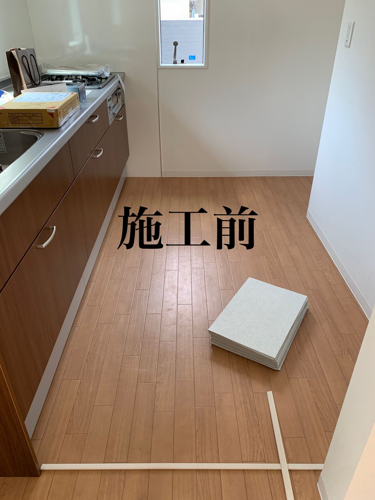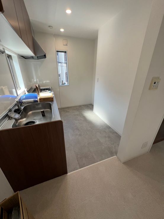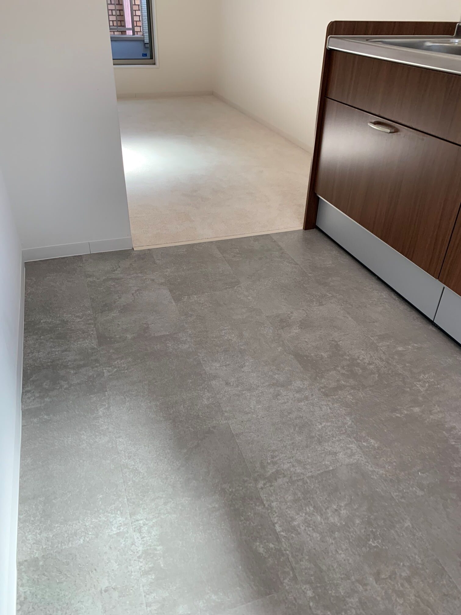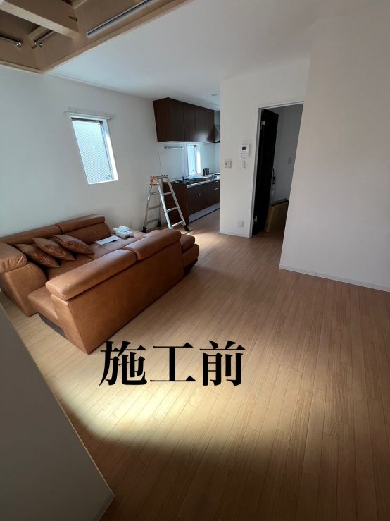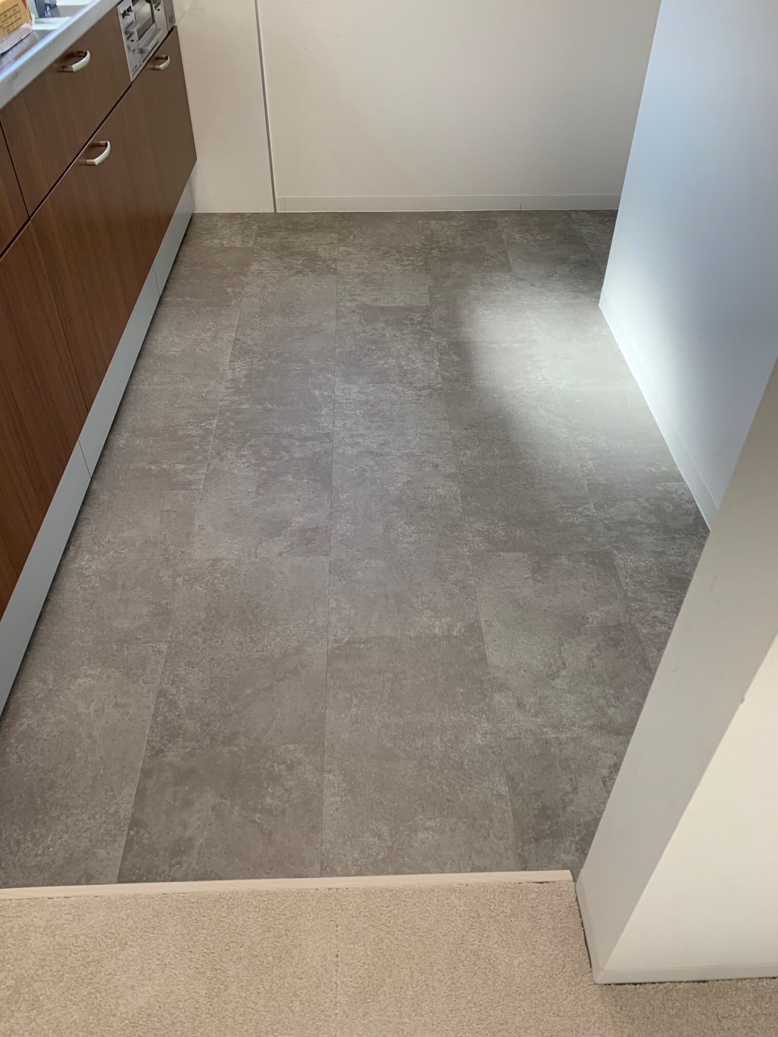 リビングのCFの床にタイルカーペット、キッチンのCFの床にLAYフローリング ピタフィーを施工させていただきました♪