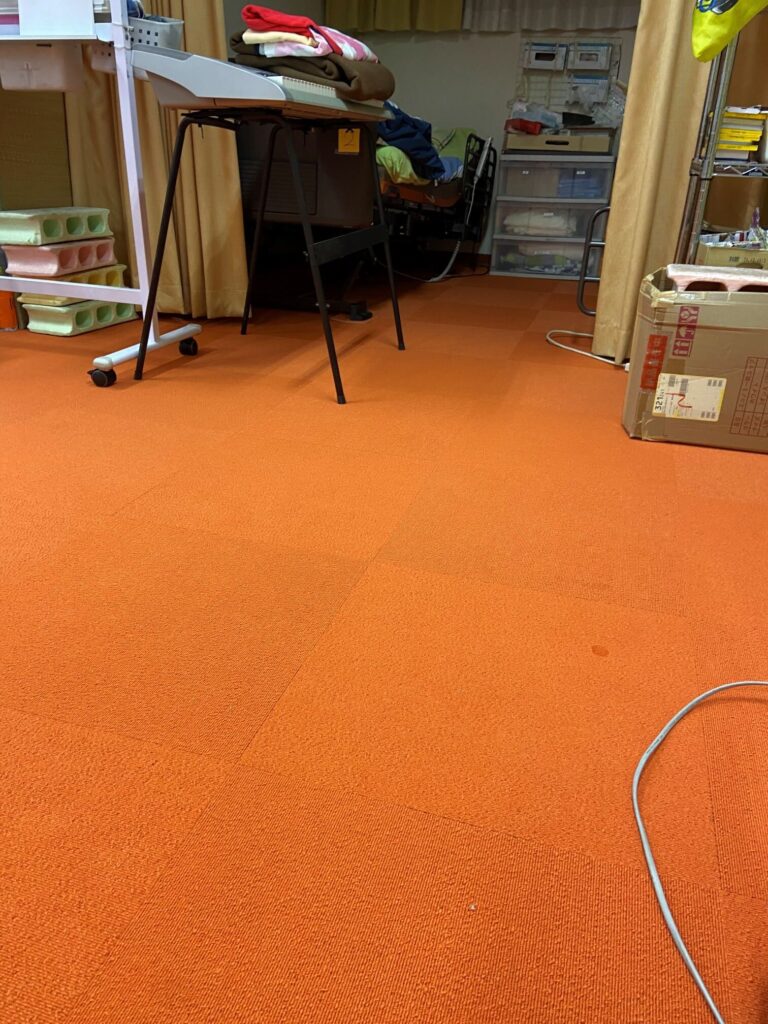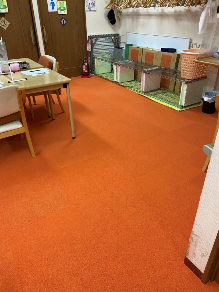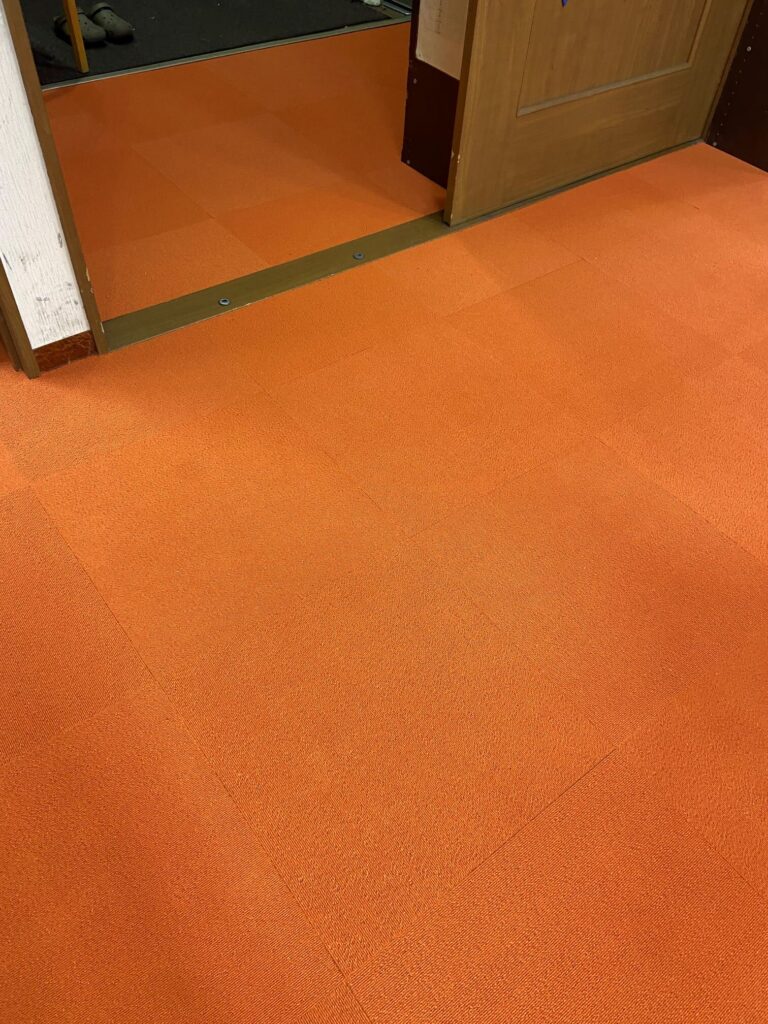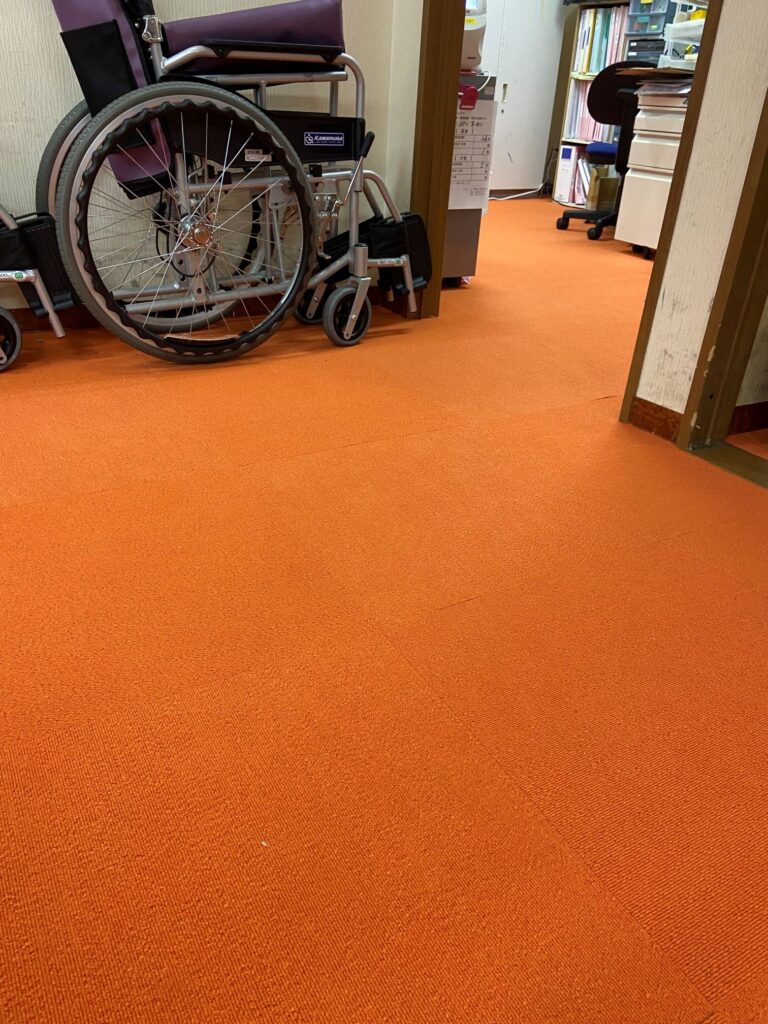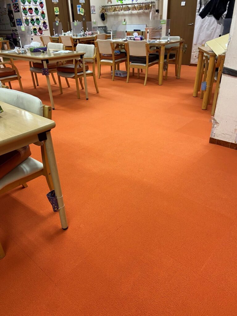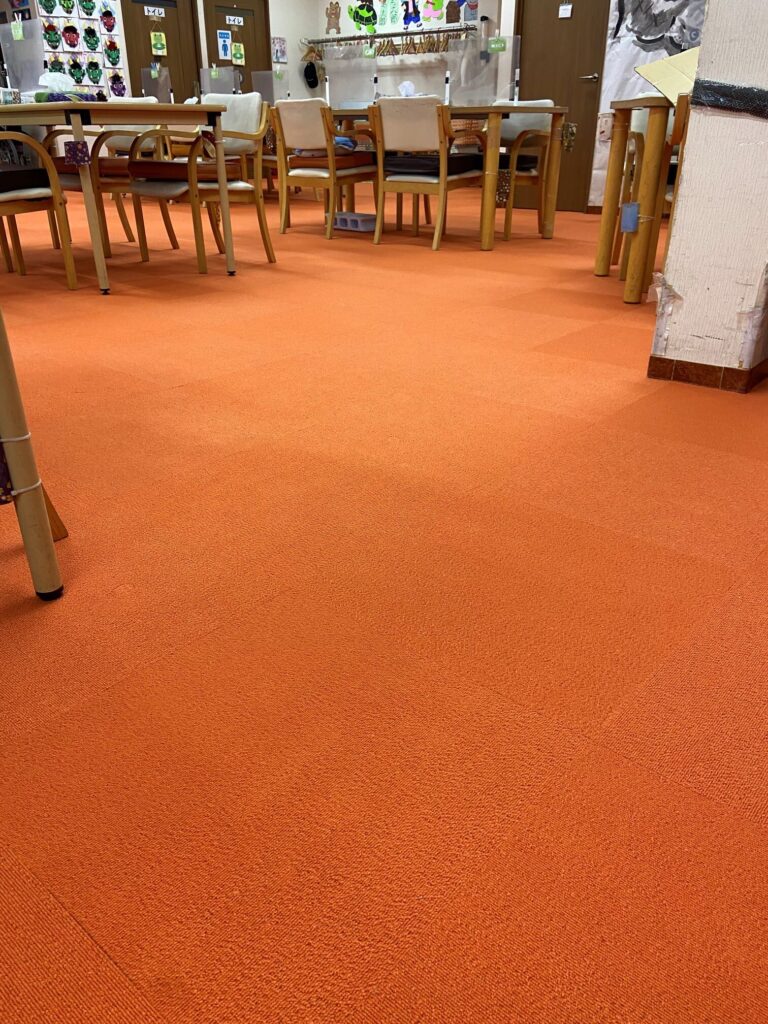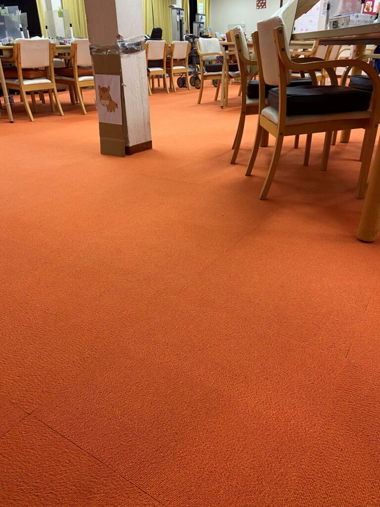 大阪市鶴見区 某老健施設様 タイルカーペット施工例 某老健施設様のタイルカーペットを夜間工事にて家具などを移動しながら張替えさせていただきました♪ タジマ タピスプレーヌⅡ 481-284 約200㎡ 施工時間約3時間30分