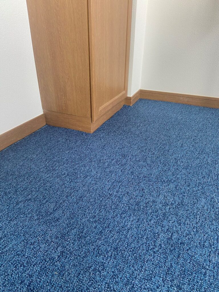 ダイニングスペースのフローリングの床に現地採寸にて製作させていただきましたオーダーカーペットを施工させていただきました♪