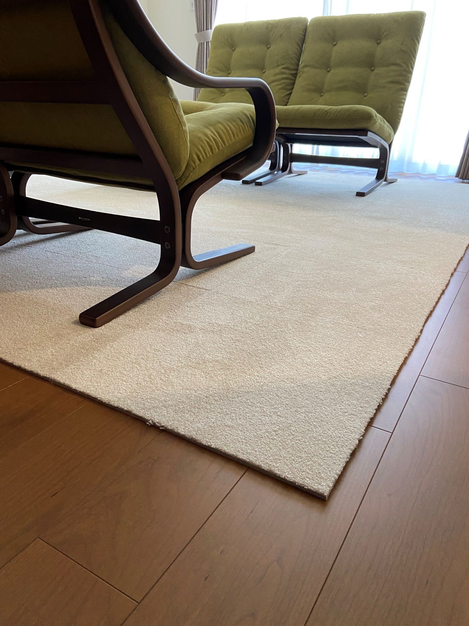 お引越し前に洋室2室に遮音性能の高いオーダーカーペットを、リビングに接着剤いらずの滑り止め付きのタイルカーペットを施工させていただきました♪