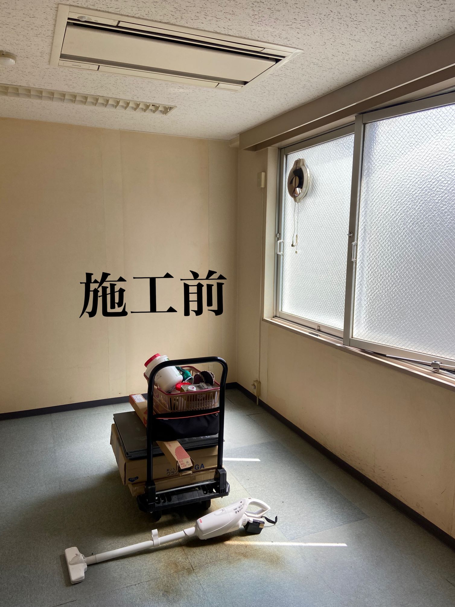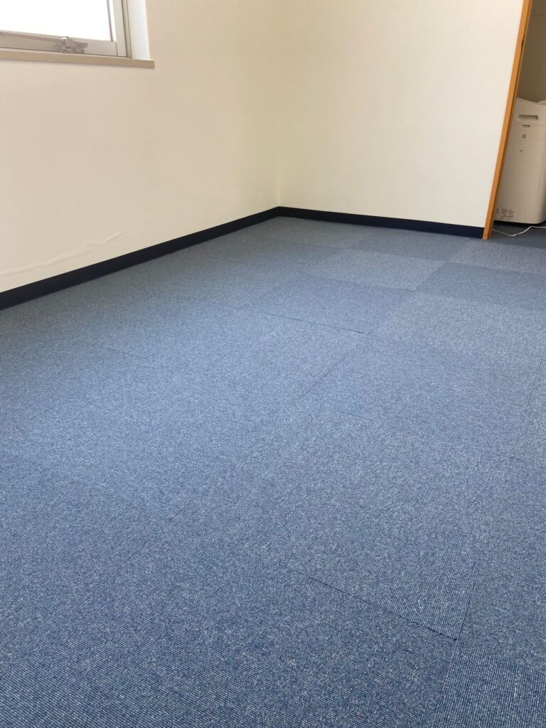 大阪市中央区 某会社様 タイルカーペット施工例 某会社様の喫煙室のタイルカーペットと巾木、クロスの張替をさせていただきました♪ 半日で綺麗に仕上がりました。 タイルカーペット 東リ㈱ GA4009 約10㎡ クロス ㈱サンゲツ SP9740 約30M 施工時間約4時間