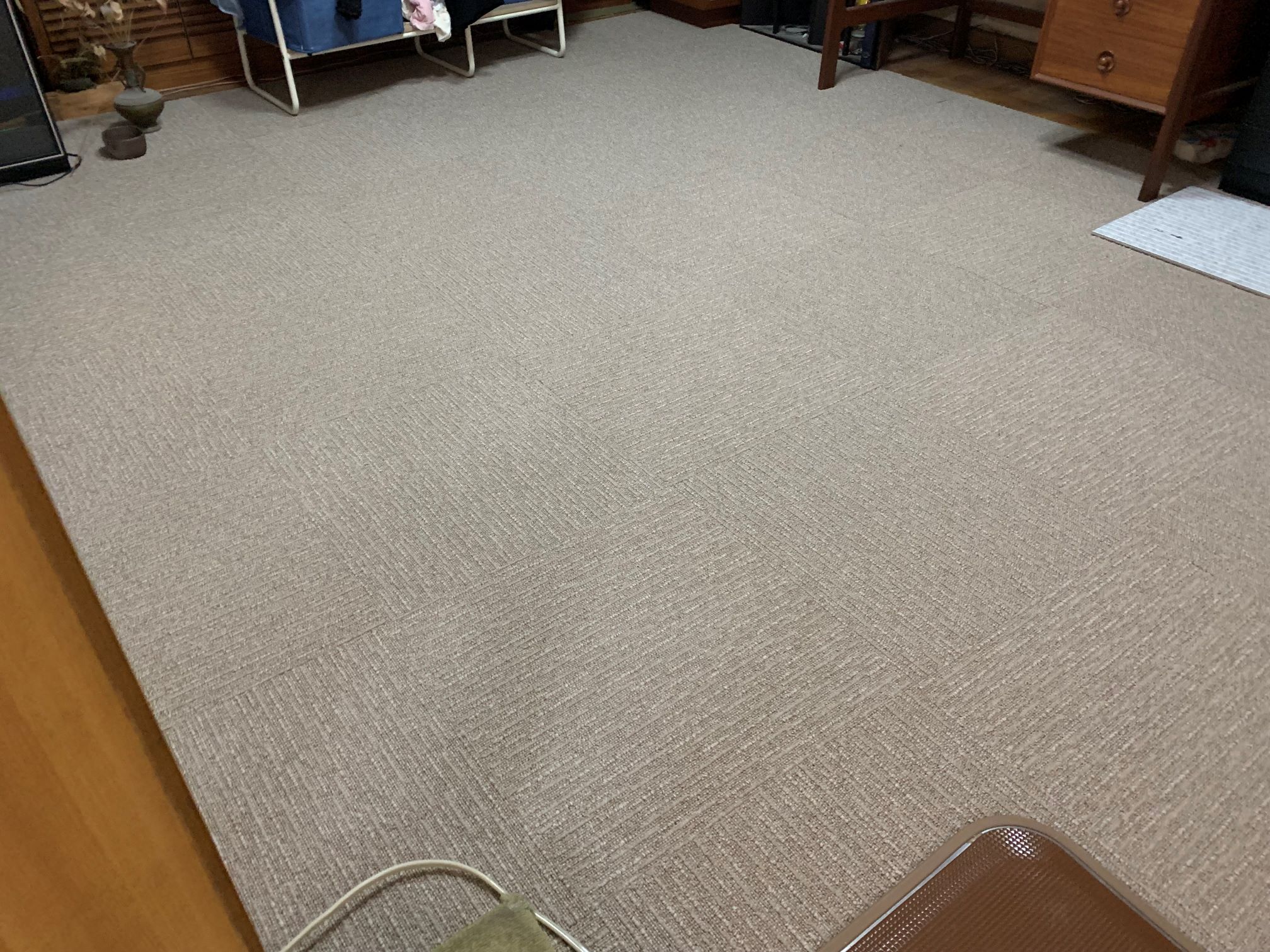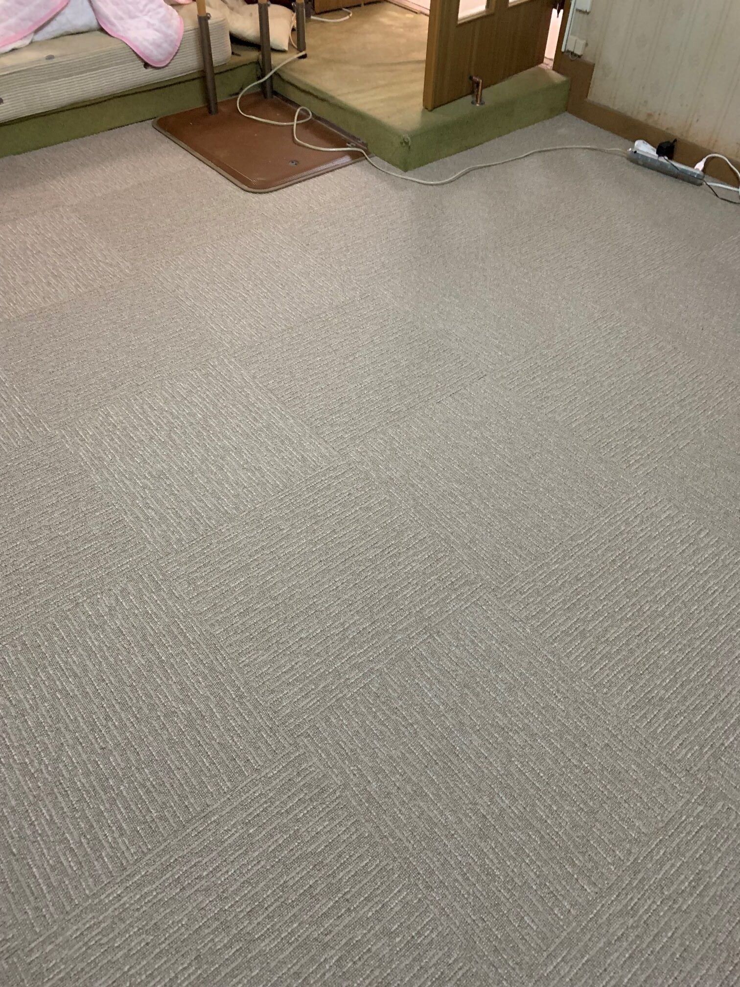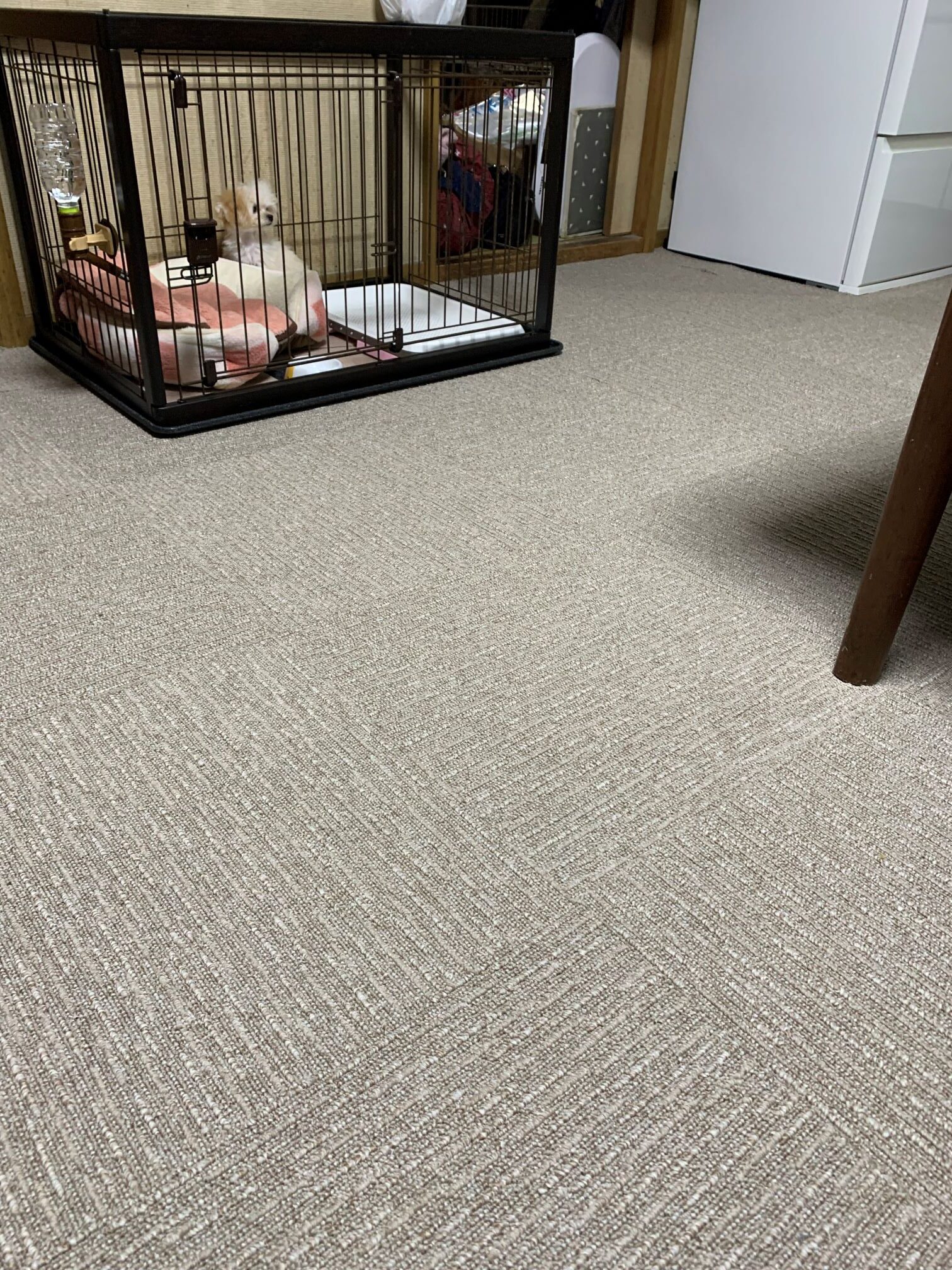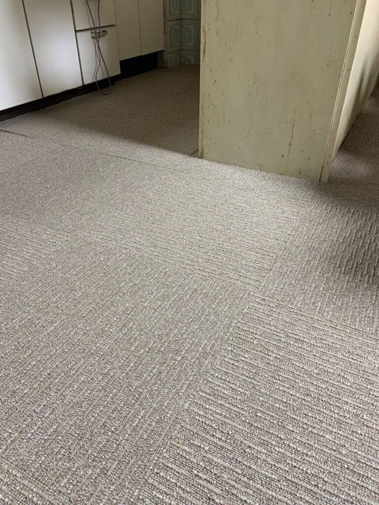 家具を移動しながらワンちゃんが走り回れるようにタイルカーペットをLDK、廊下、洋室に施工させていただきました♪