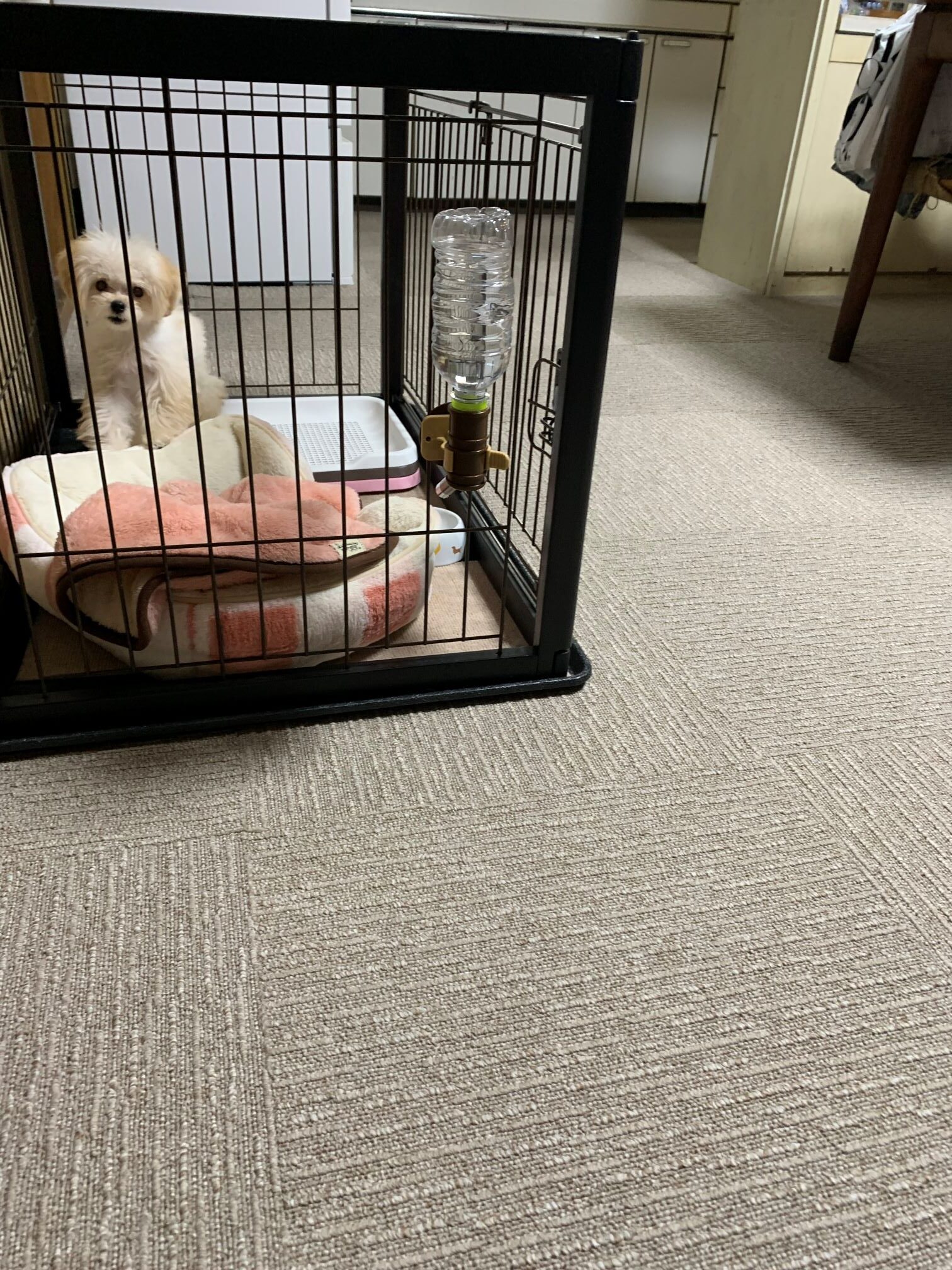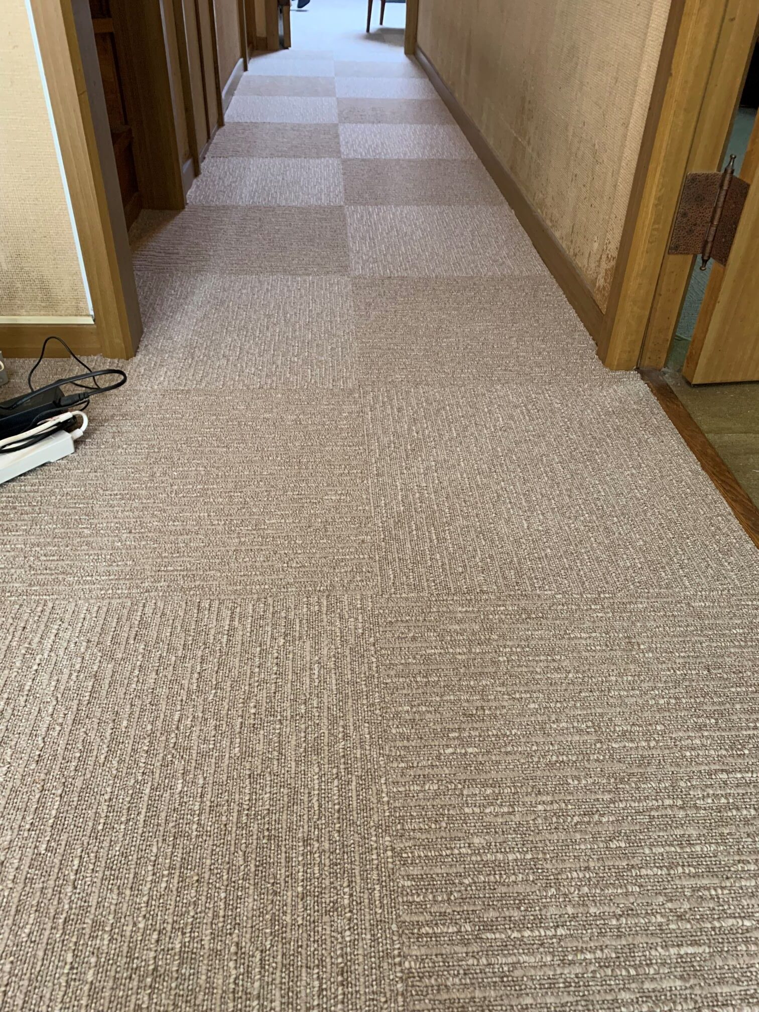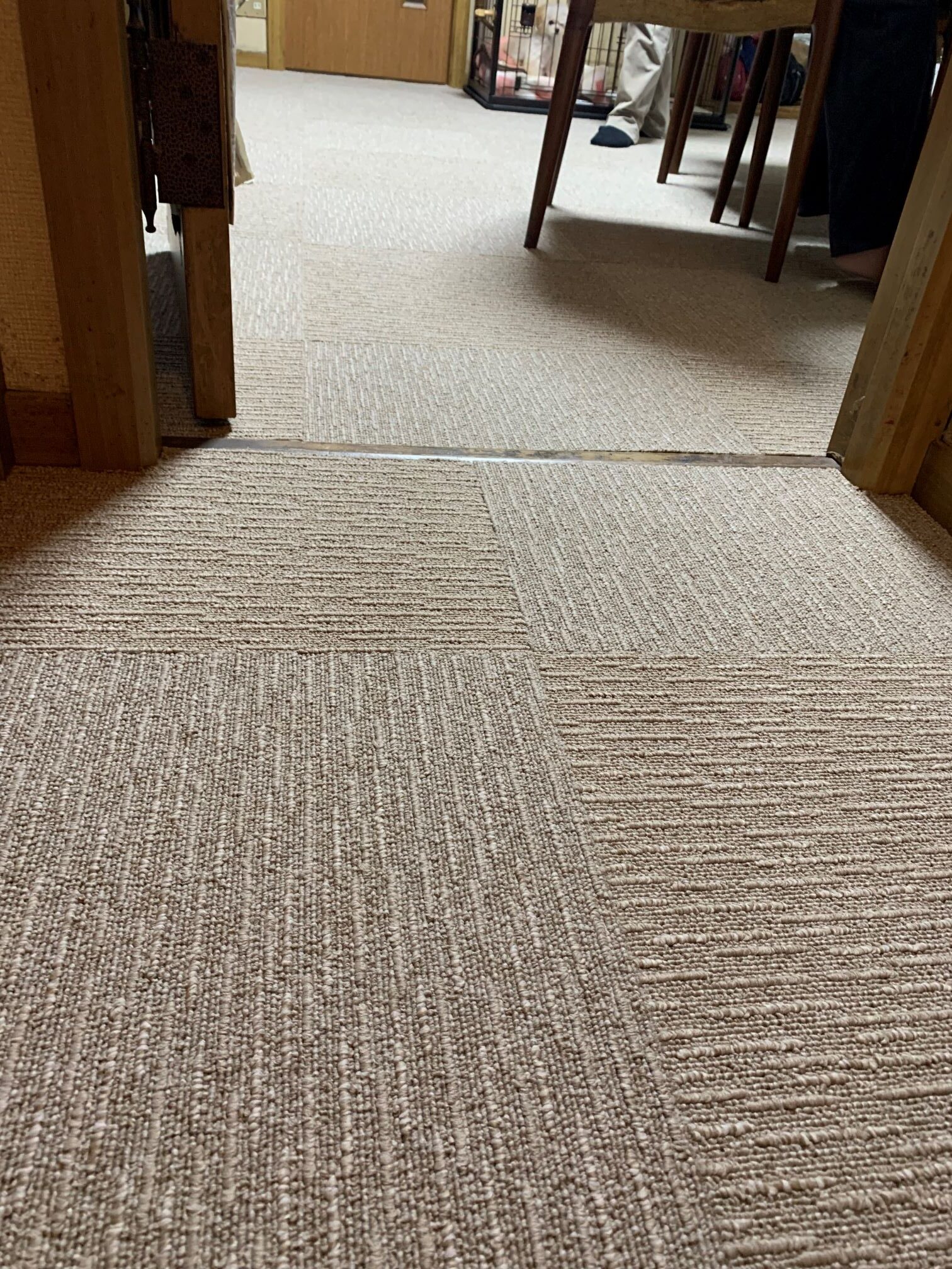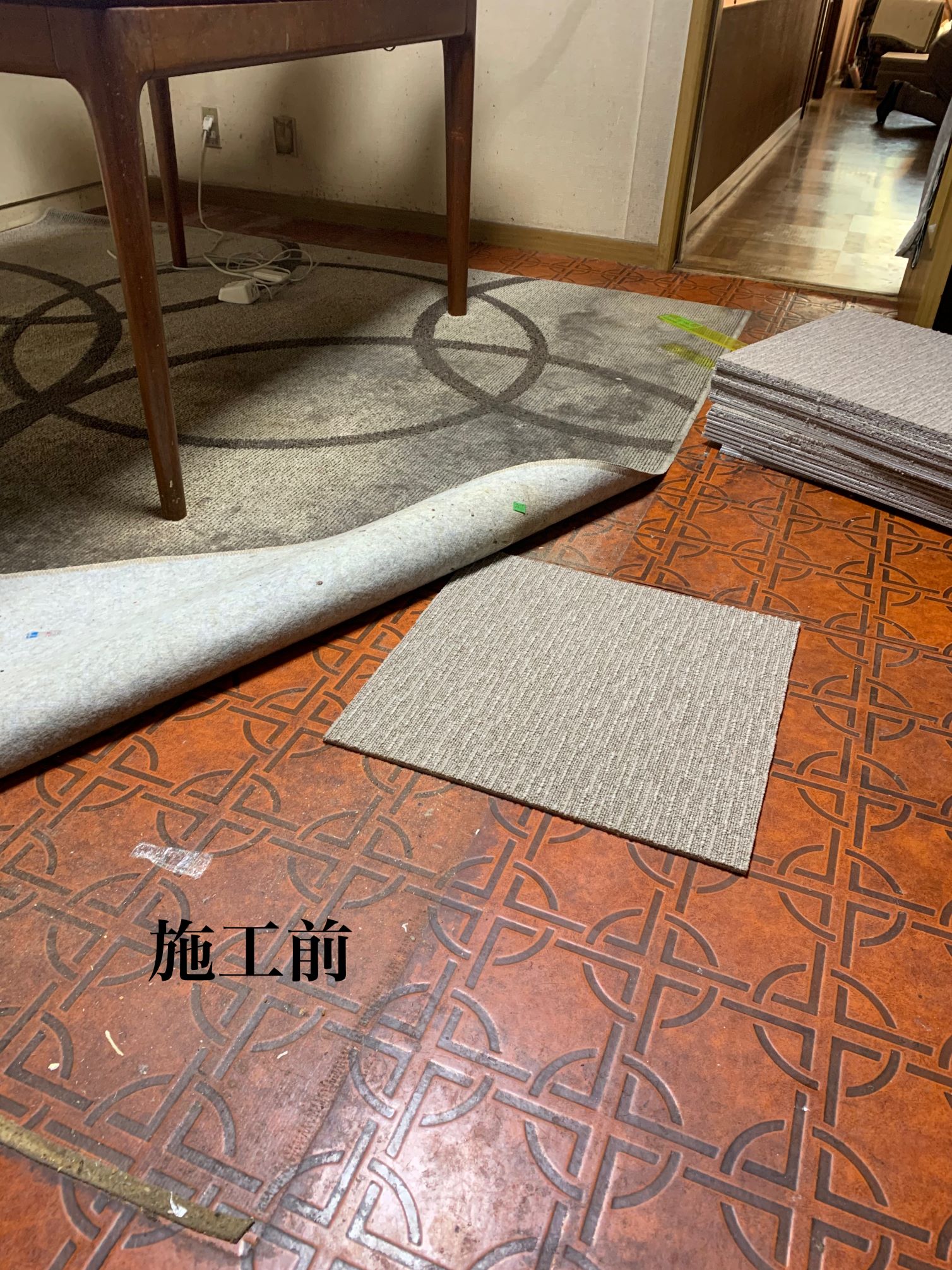 家具を移動しながらワンちゃんが走り回れるようにタイルカーペットをLDK、廊下、洋室に施工させていただきました♪