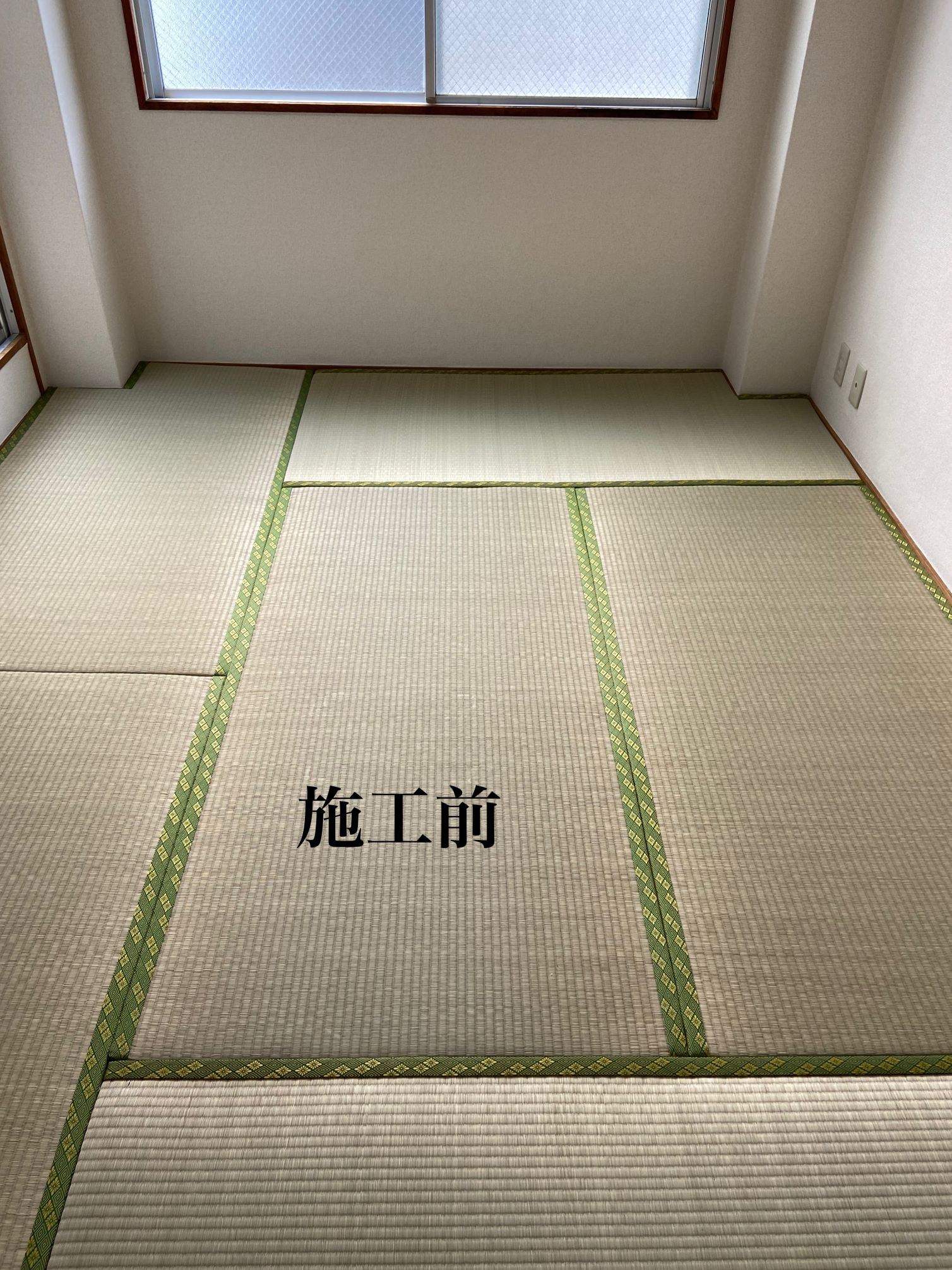 大阪市淀川区 H様邸 オーダーカーペット施工例 和室の畳の上に現地採寸にて製作させていただきましたオーダーカーペットを施工させていただきました♪ ポリプロピレン100%の遊び毛の出ないループタイプのカーペットにて。 東リ㈱ マスターフル MF4216 2570x3500㎜変形 施工時間約15分
