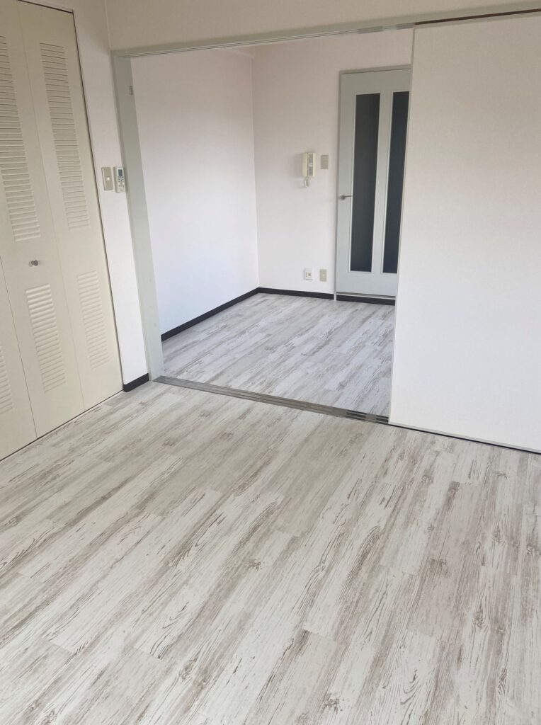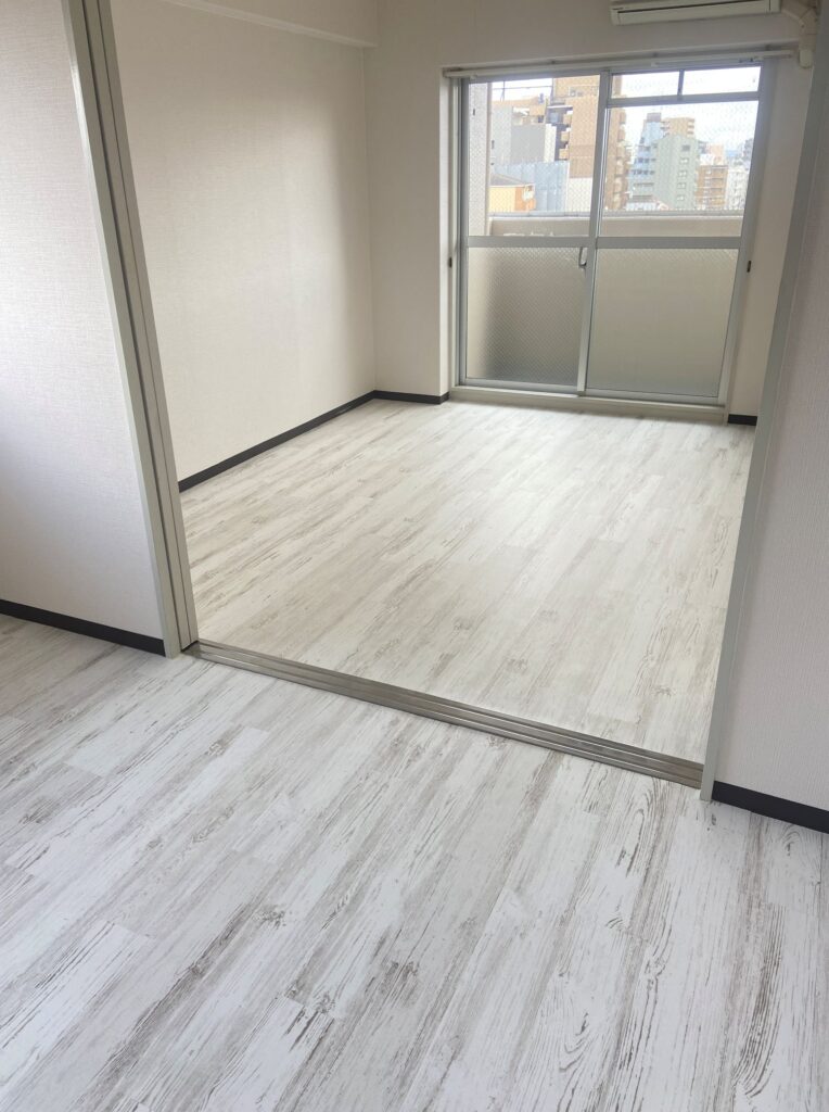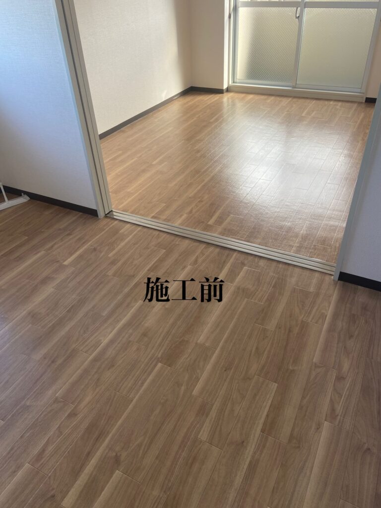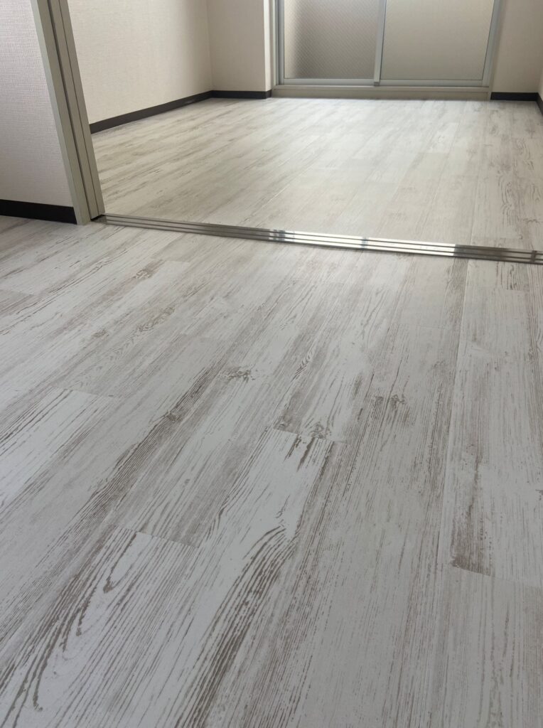 お引越し前にクッションフロアーの床にLAYフローリングピタフィーを施工させていただきました♪