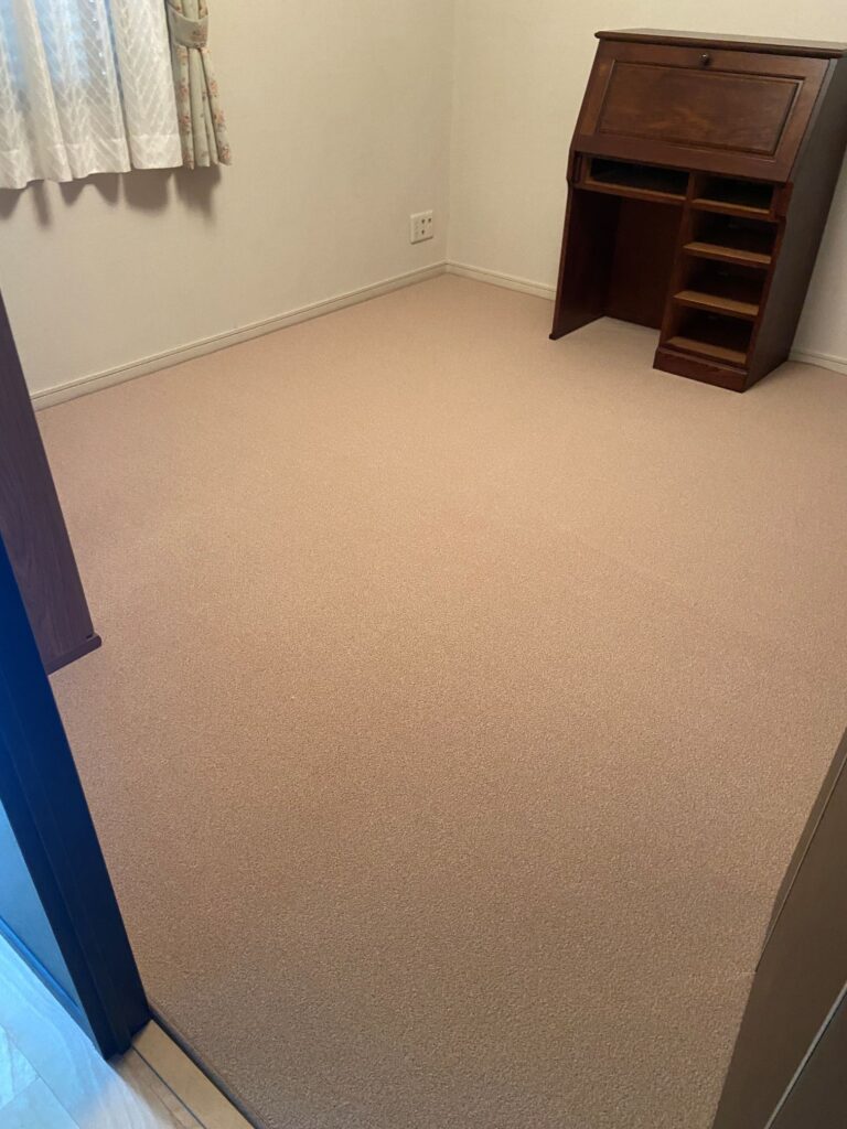 洋室x2室のフローリングの床に現地採寸にて製作させていただきましたオーダーカーペットを