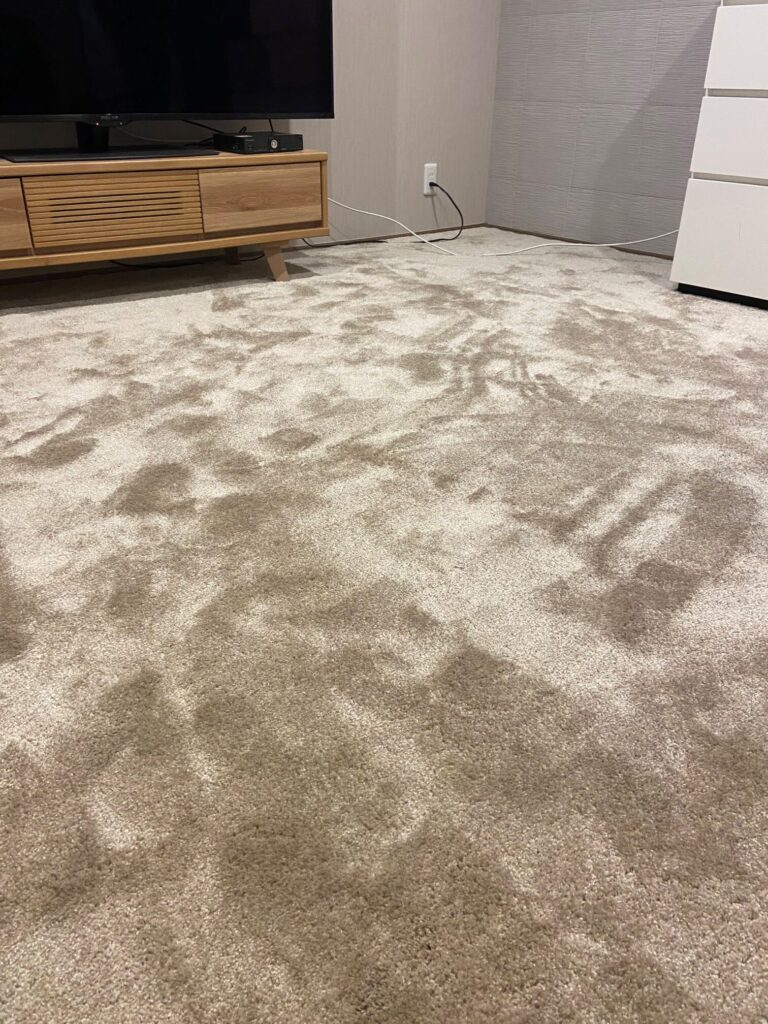 大阪市淀川区 K様邸 オーダーカーペット施工例 洋室のフローリングの床に現地採寸にて製作させていただきましたオーダーカーペットを家具を移動しながら施工させていただきました♪ 毛足の長いカーペットにて踏み心地抜群! アスワン㈱ アスフラフィ FFY-82 約15㎡ 施工時間約1時間