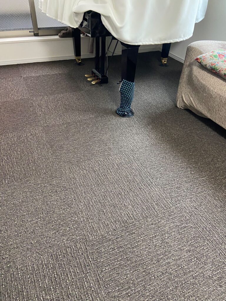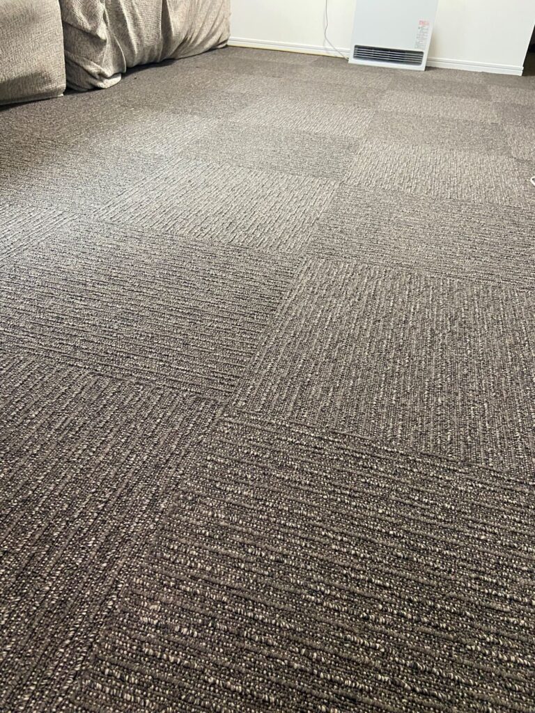 大阪市淀川区 K様邸 タイルカーペット施工例 古くなったロールカーペットなどを撤去し、フローリングの床に接着剤いらずのタイルカーペットを家具などを移動しながら施工させていただきました♪ 東リ㈱ FF2102 約18平米 施工時間約1時間30分