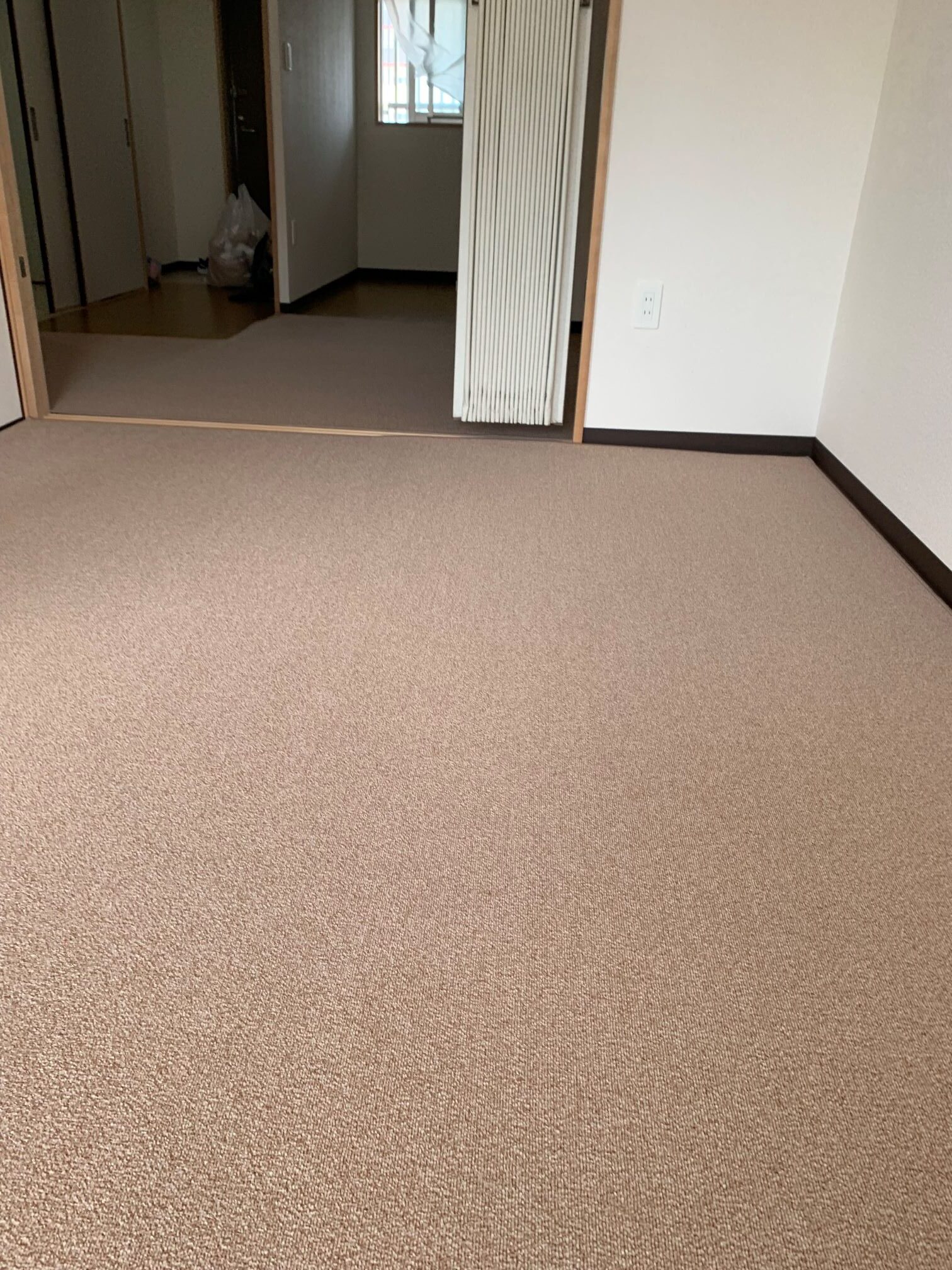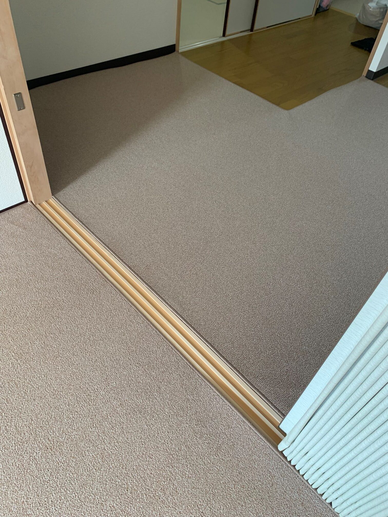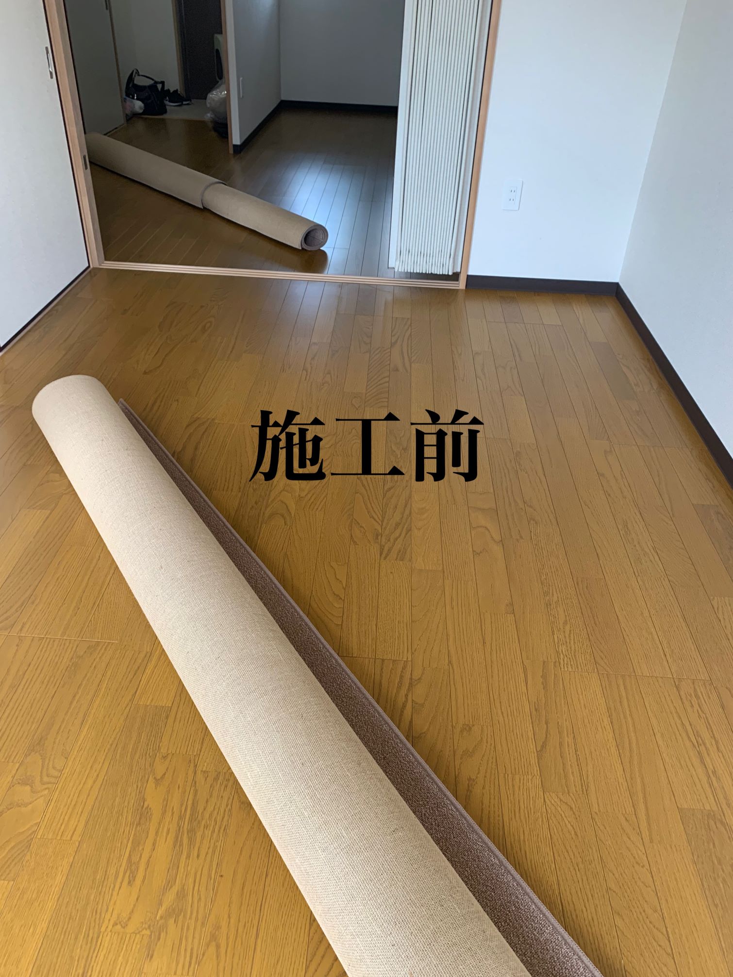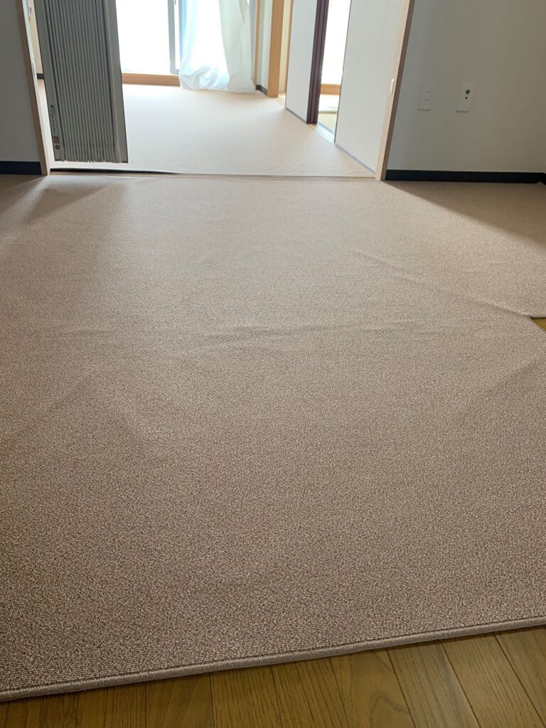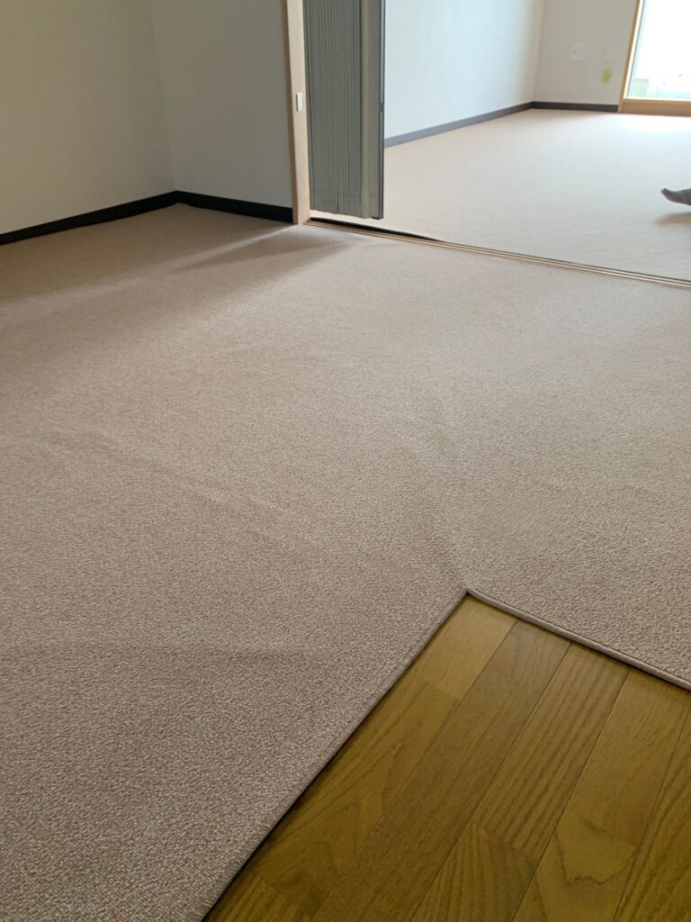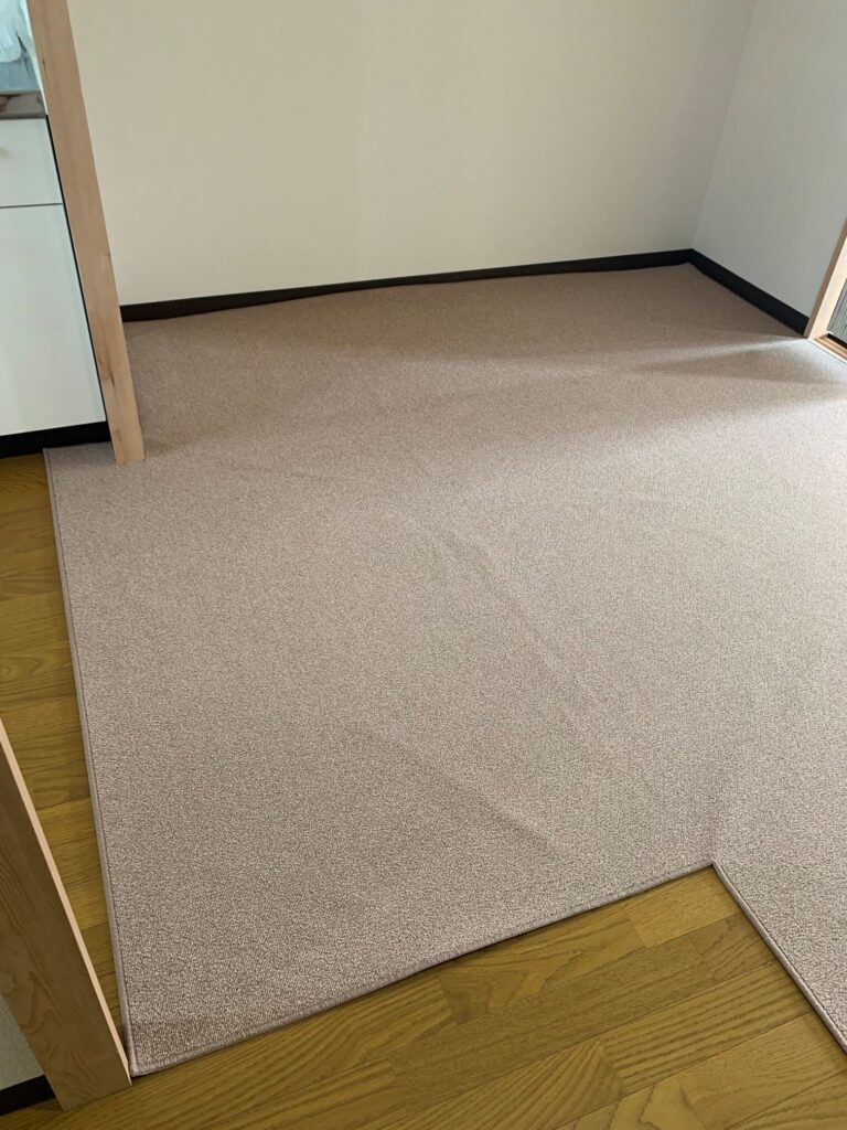 大阪市淀川区 S様邸 オーダーカーペット施工例 現地採寸にて製作させていただきましたオーダーカーペットを施工させていただきました♪ 細かいループのナイロン100%で遊び毛の出ないお掃除が簡単なカーペットにて。 東リ㈱ グレース GJ2521 施工時間約20分