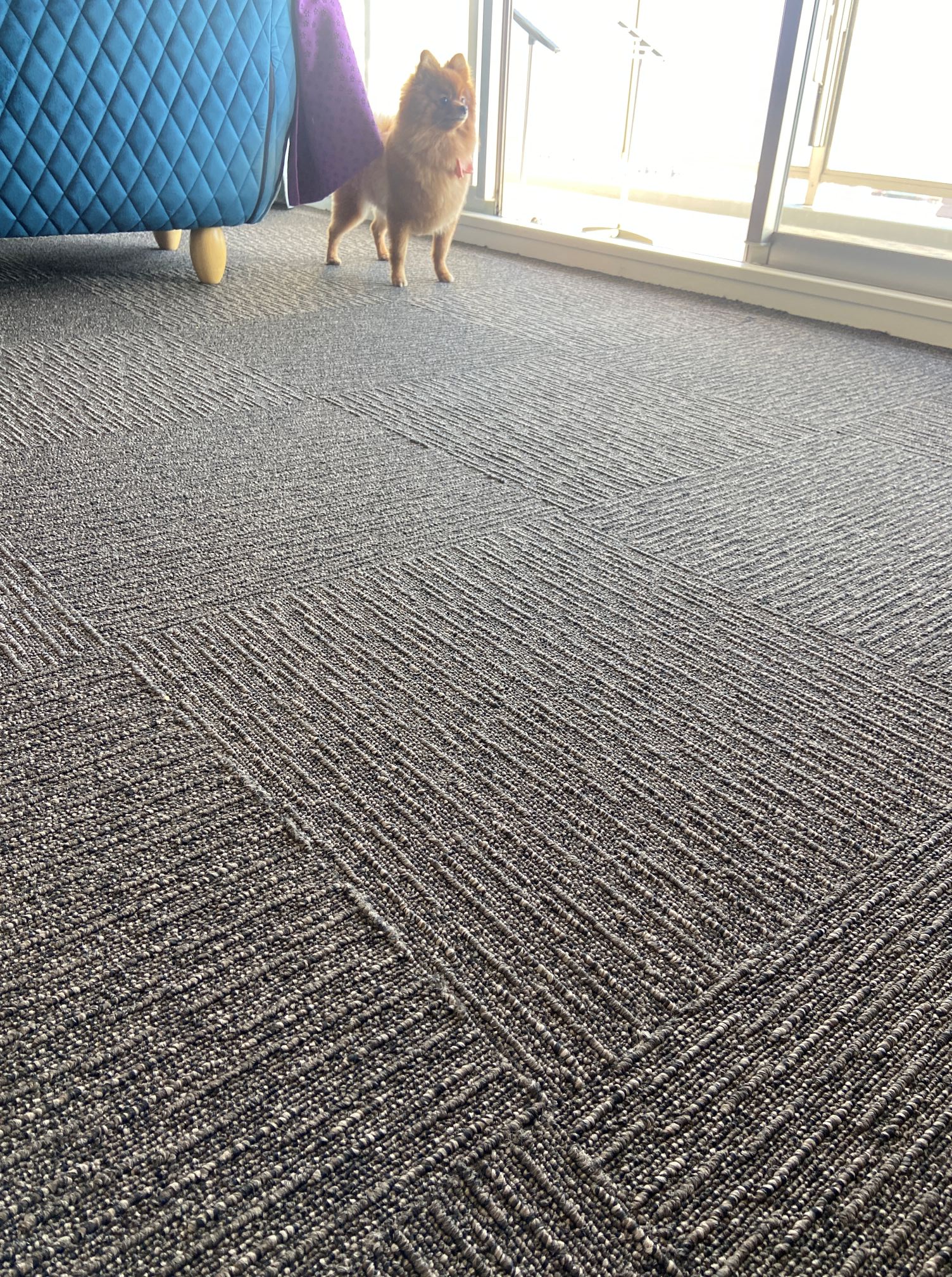 10数年前に敷かせていただいたリビング、廊下の汚れて古くなったタイルカーペットを貼り替えにて施工させていただきました♪