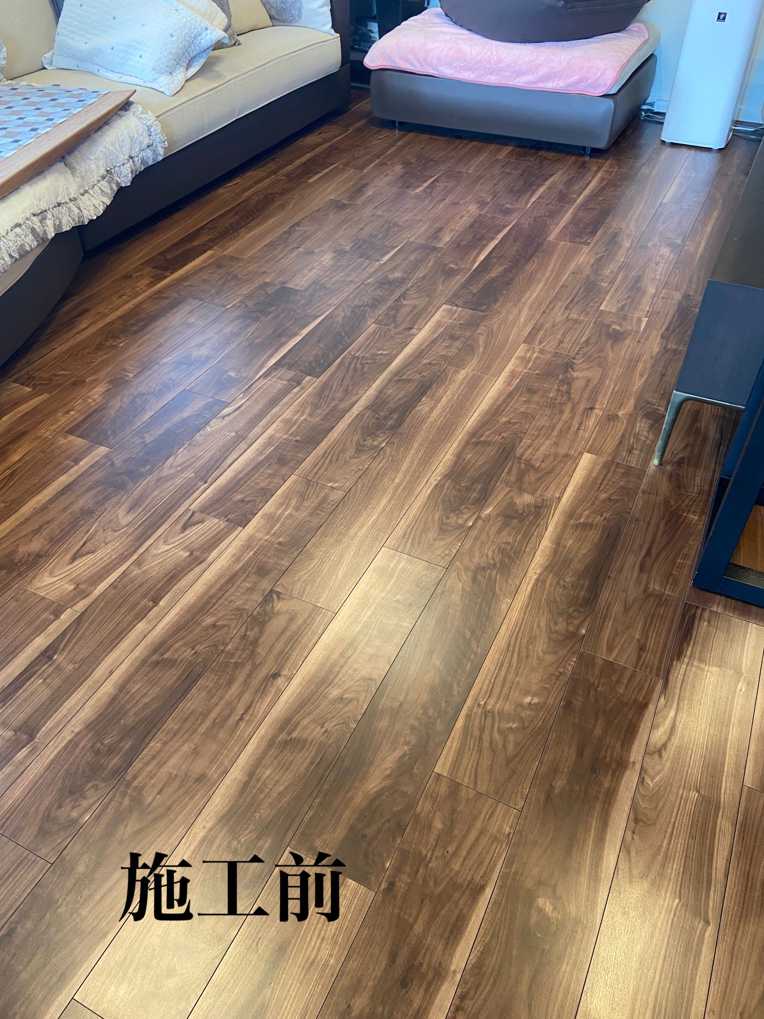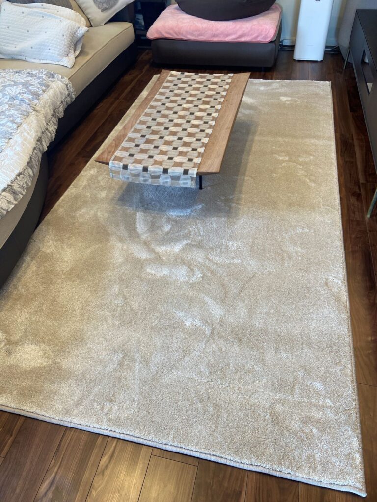 リビングに現地採寸にて製作させていただきましたオーダーカーペットを施工させていただきました♪