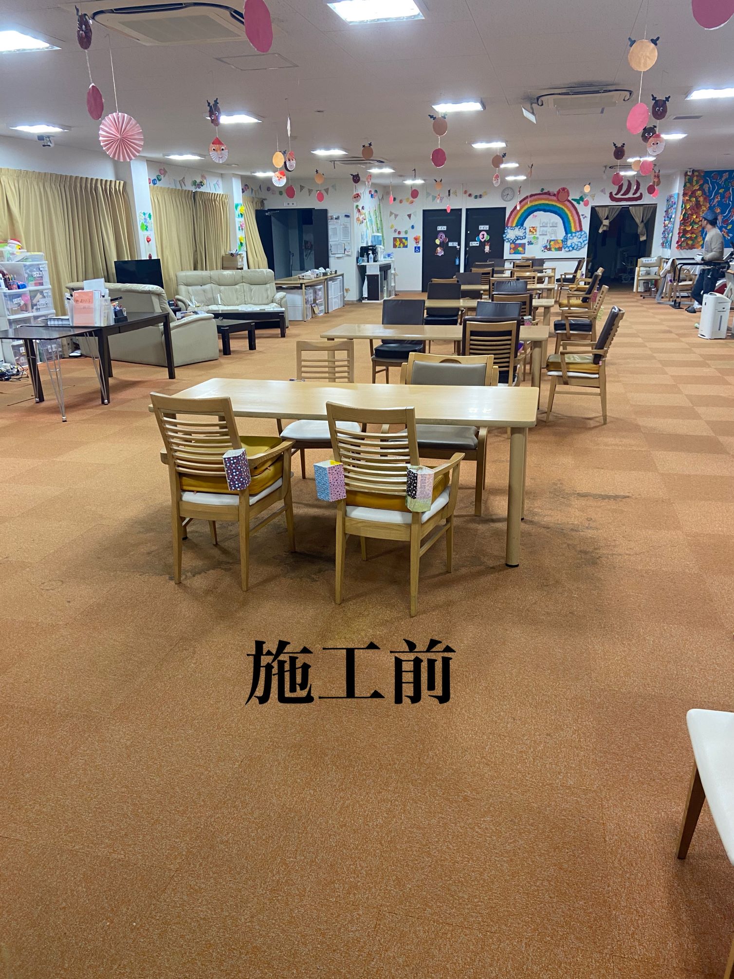 某老健施設様のタイルカーペットを夜間工事にて家具などを移動しながら貼替えさせていただきました♪