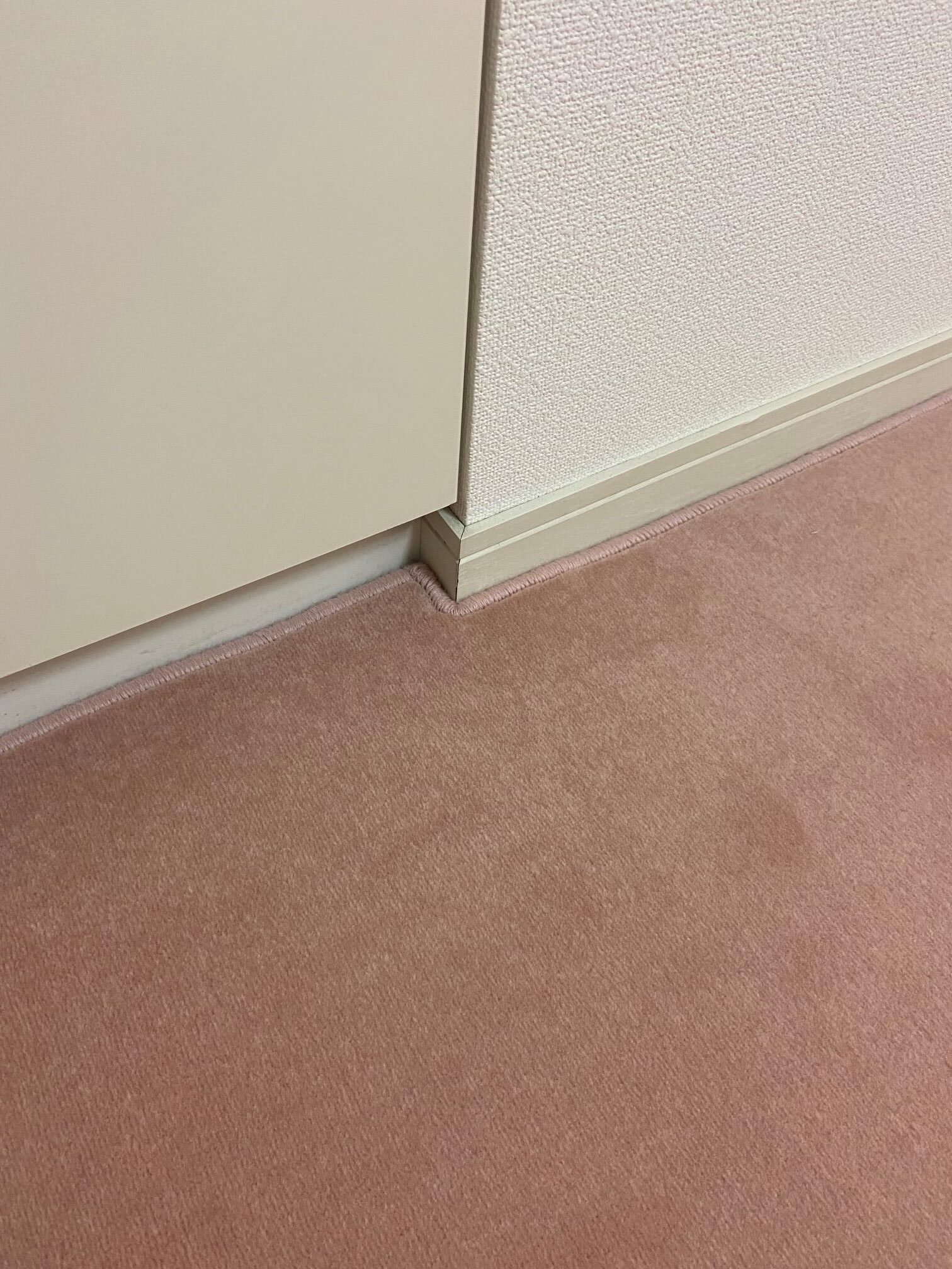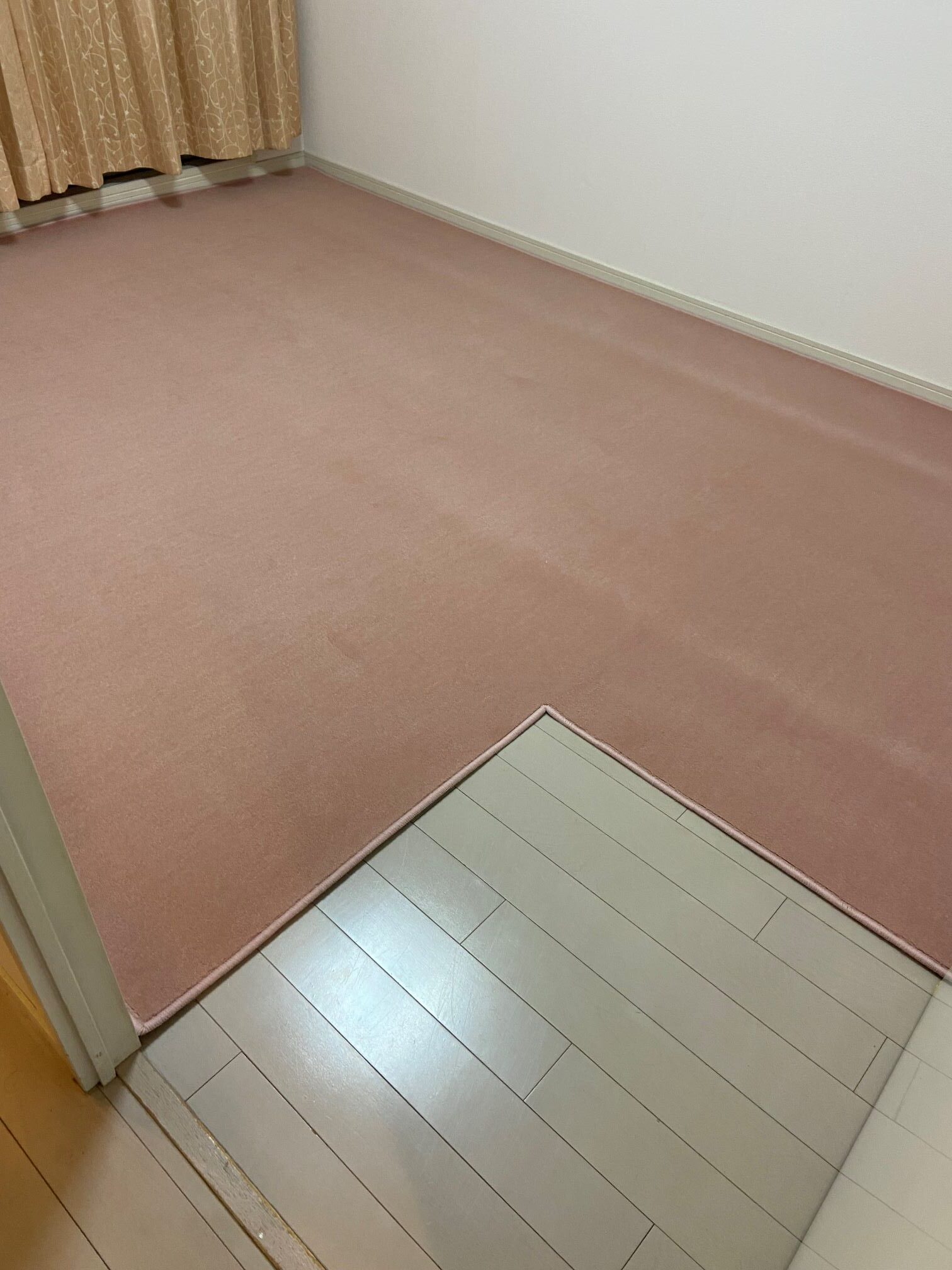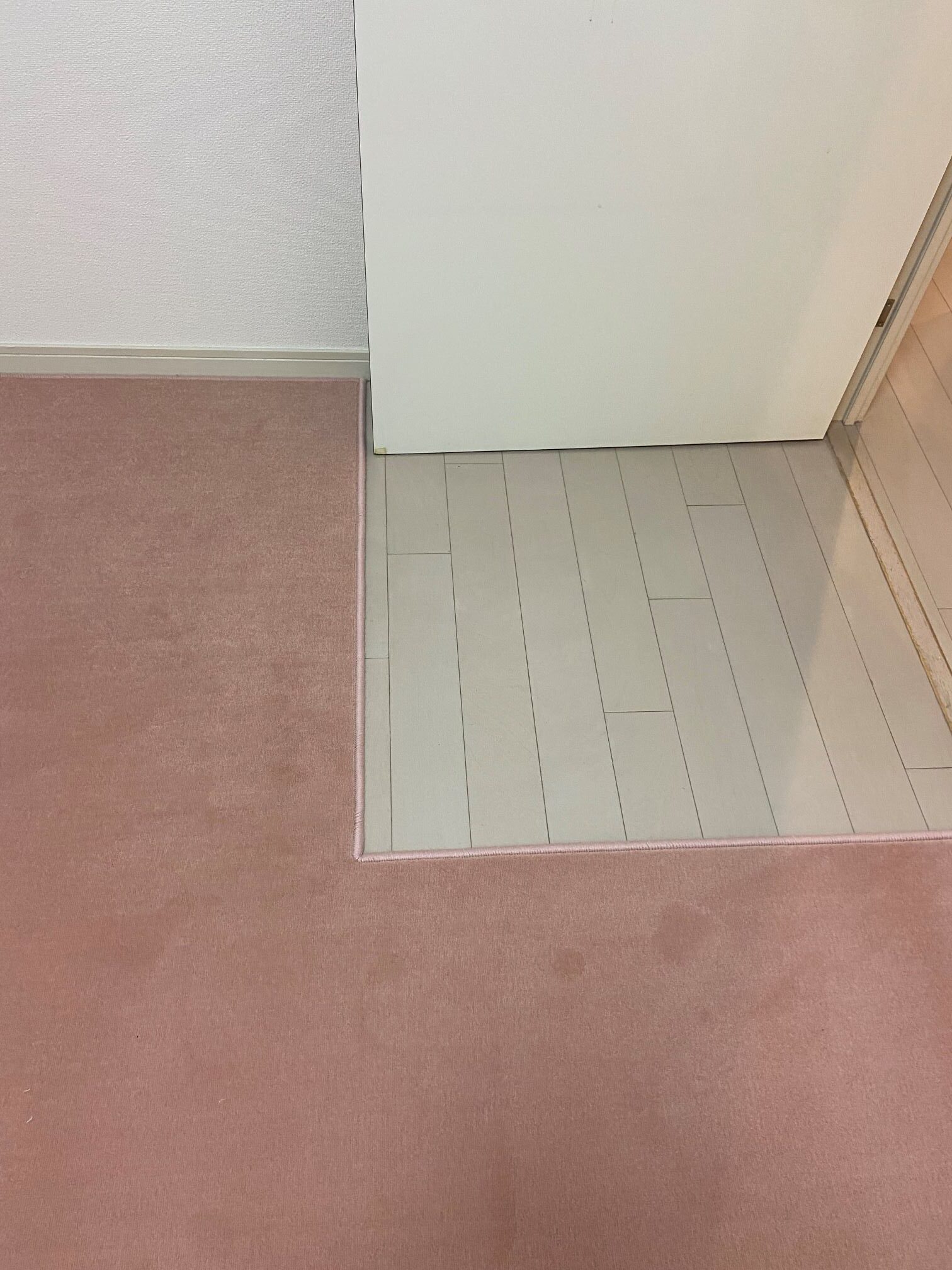ドア下の隙間が少ない為カーペットを敷くとドアが開かない為その部分をくり抜きました。