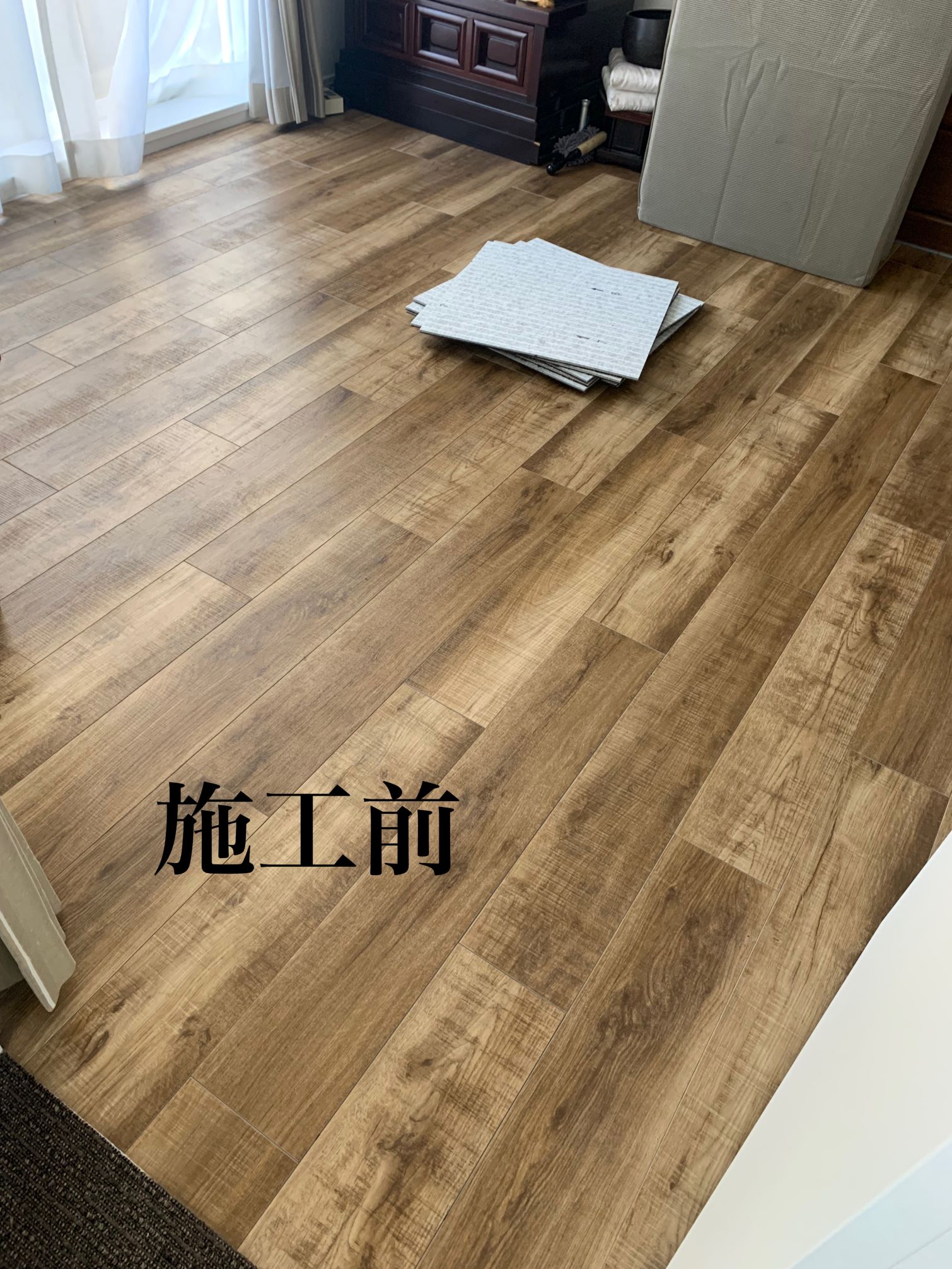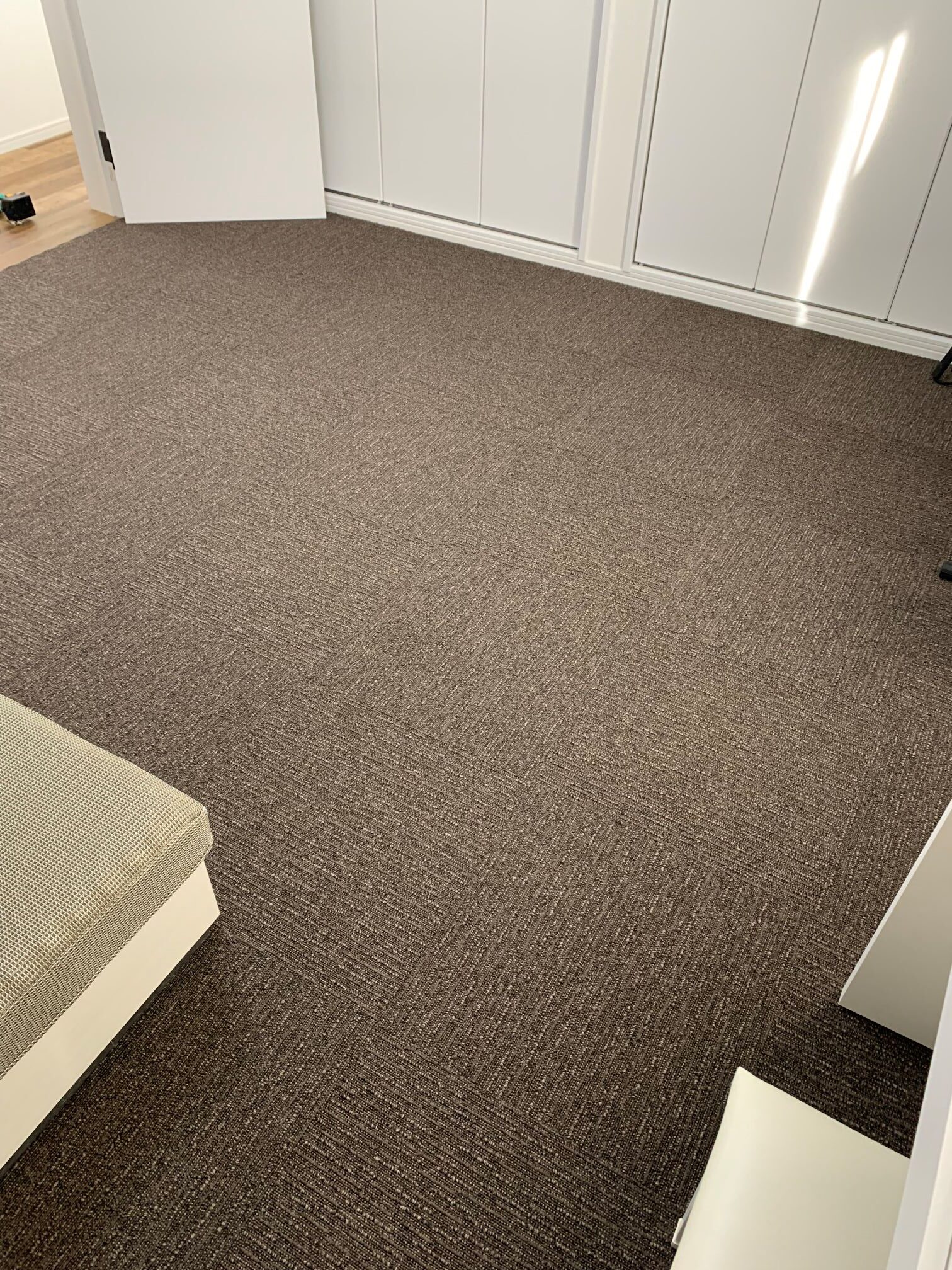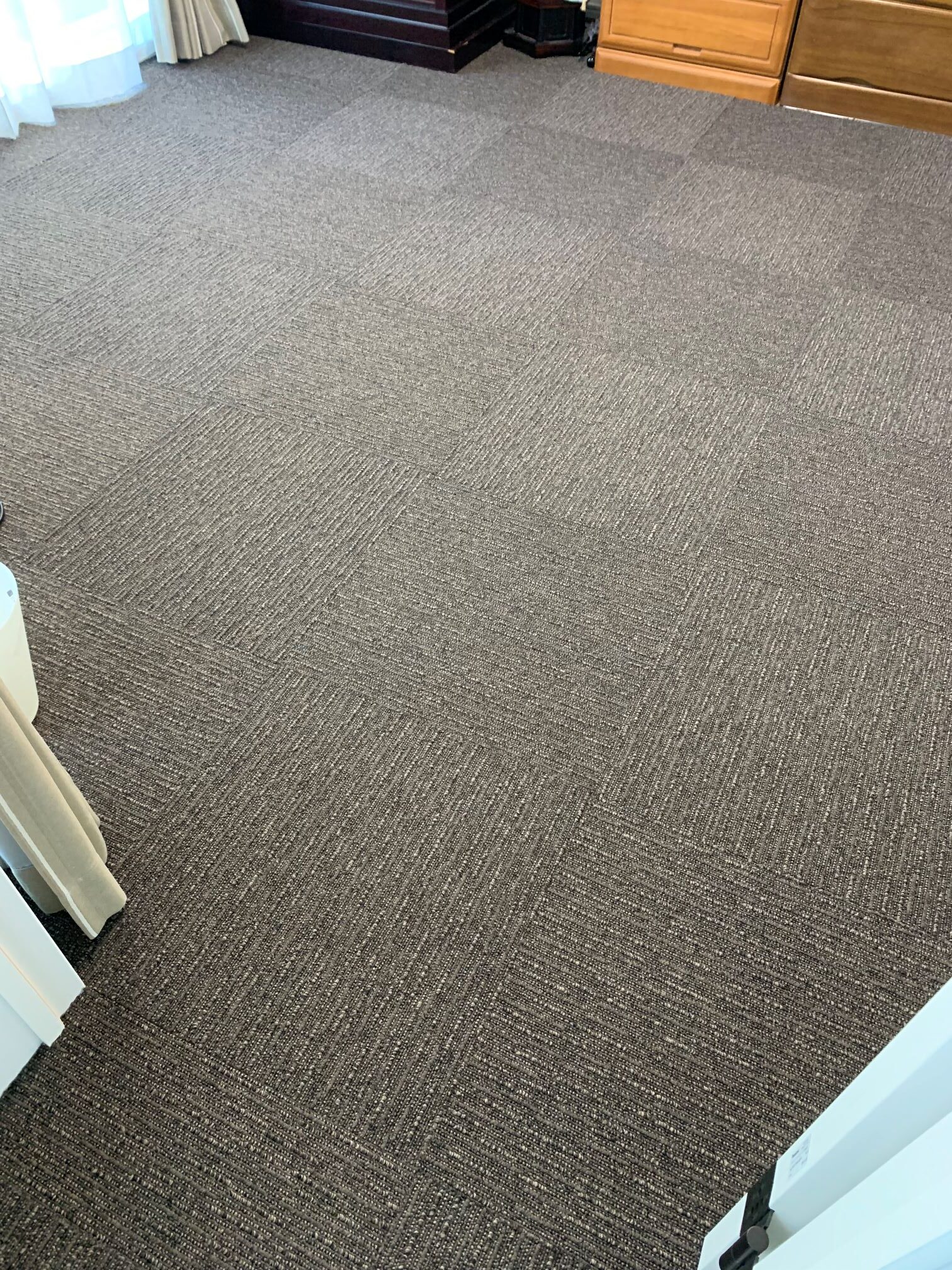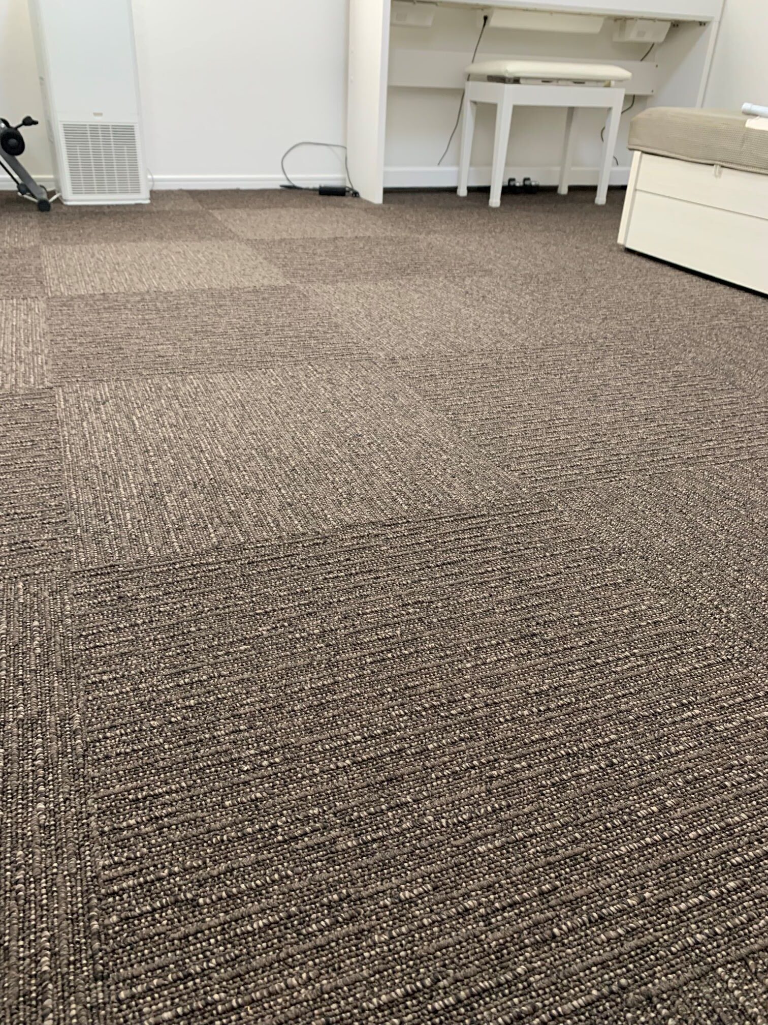 大阪府吹田市 T様邸 タイルカーペット施工例 フローリングの洋間x2室にいつでも外して洗えるタイルカーペットを施工させていただきました♪ ループに高低差のあるナチュラルな雰囲気のカーペットにて。 東リ㈱ FF2102 約22㎡ 施工時間約90分