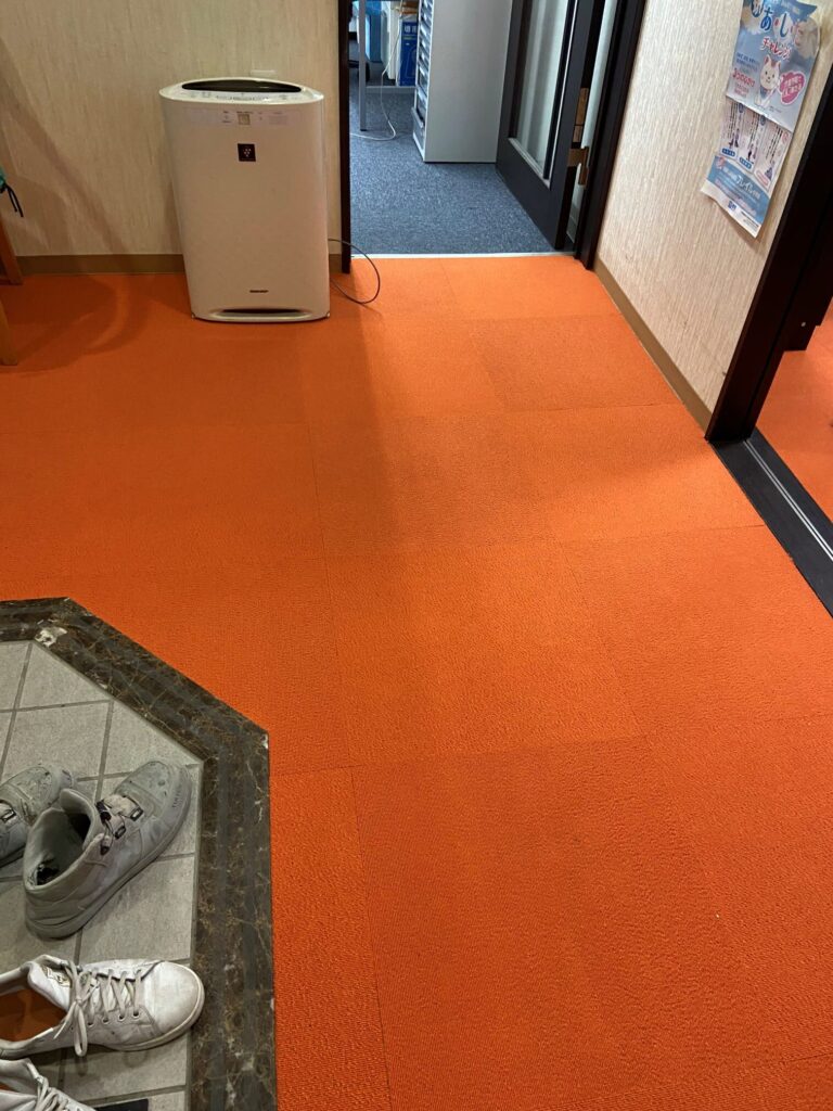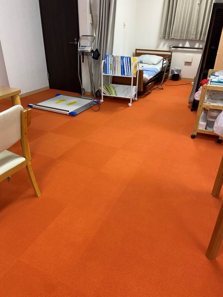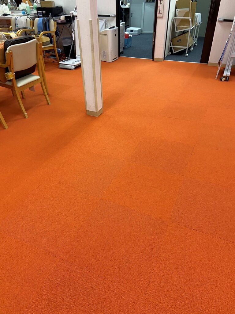 大阪府堺市 某老健施設様 タイルカーペット施工例 某老健施設様のタイルカーペットを夜間工事にて机や器具などを移動しながら貼り替えさせていただきました♪ タジマ タピスプレーヌⅡ 481-284 約185㎡ 481-225 約32㎡ 施工時間約4時間