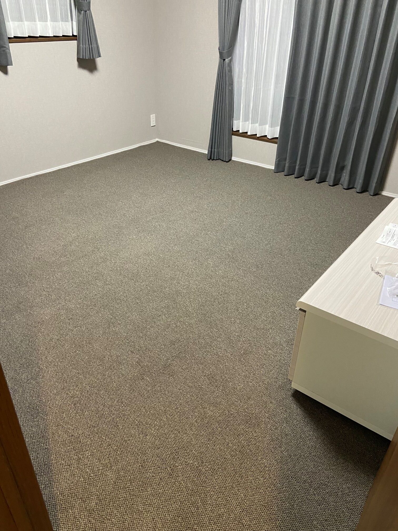 大阪府豊中市 I様邸 オーダーカーペット施工例 お引っ越しに伴い現地採寸にて製作させていただきましたオーダーカーペットを施工させていただきました♪ 遊び毛の出にくいポリプロピレン100%のループタイプのカーペットにて。 東リ㈱ マスターフルⅡ MF4216 3440x3440㎜ 施工時間約30分
