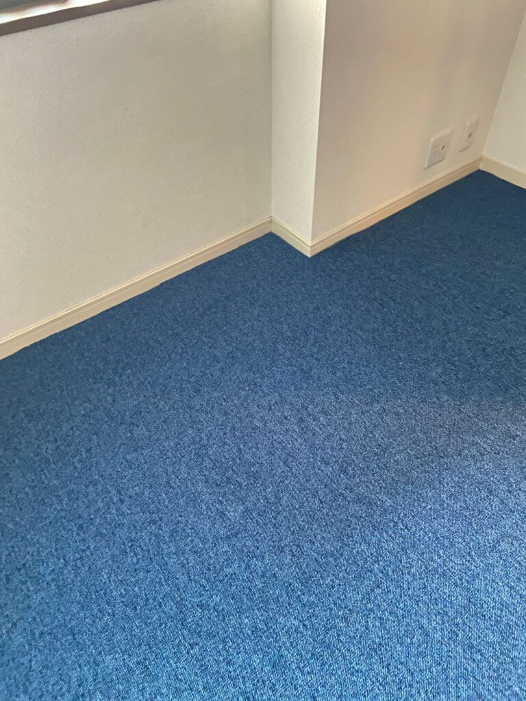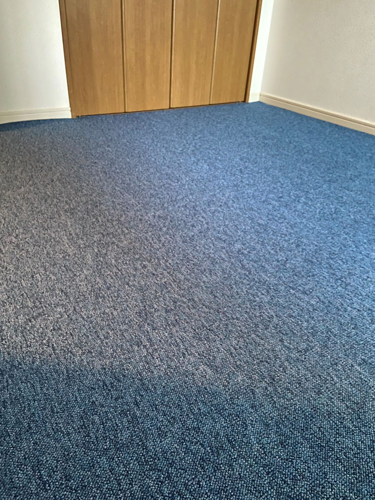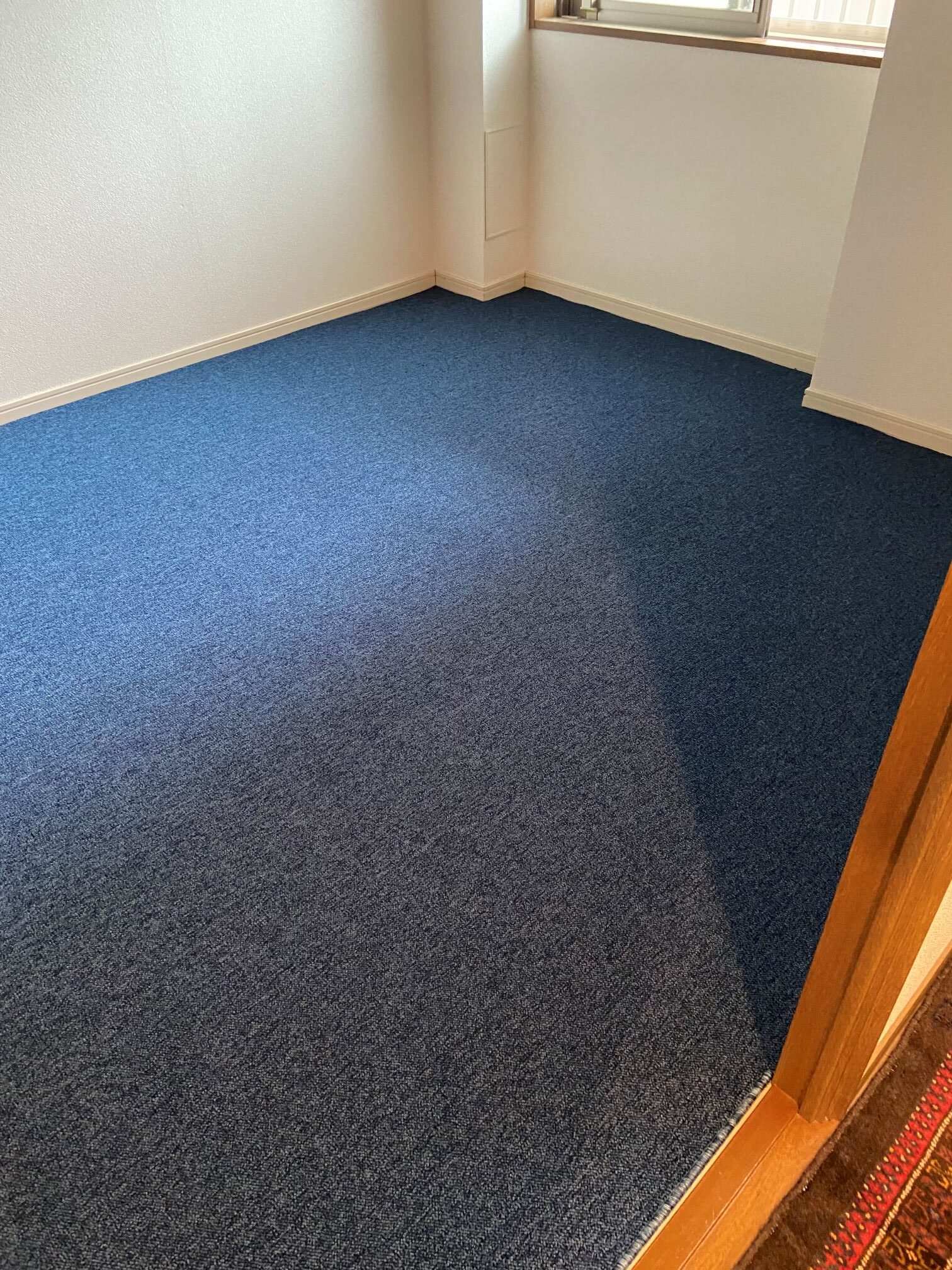 フローリングの床に現地採寸にて製作させていただきましたオーダーカーペットを置き敷きにて施工させていただきました♪