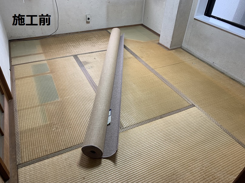 和室の畳の上に現地採寸にて製作させていただきましたオーダーカーペットを施工させていただきました♪