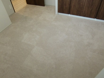 洋室のフローリングの床に接着剤いらずのタイルカーペットを施工させていただきました♪
