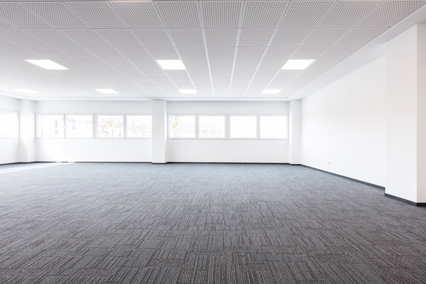 リビングのフローリングの床に真っ黒なタイルカーペットを