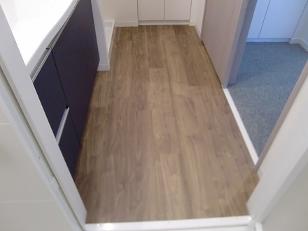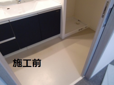 洗面脱衣場のクッションフロアーの床に傷防止、イメージチェンジの為に