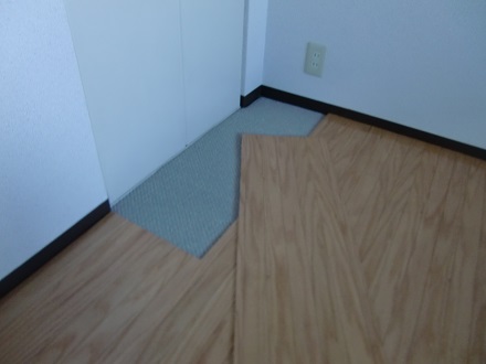 ウッドカーペットを敷くとクローゼット開閉ができない為その部分をくり抜き
