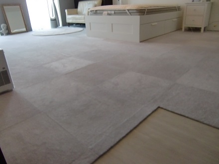 タイルカーペットを家具を移動しながら施工させていただきました♪