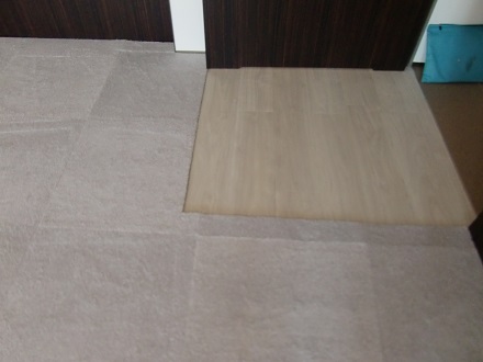 ドア下は隙間が少ないためカーペットを敷くとドアが開かない為、同色系のピタフィーという