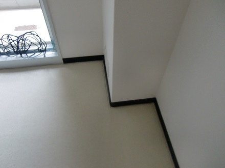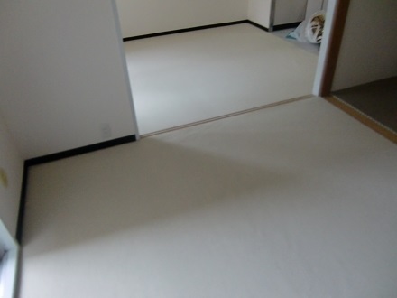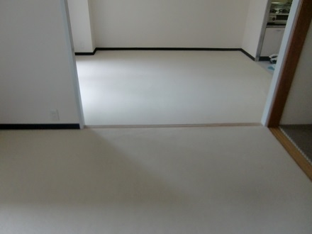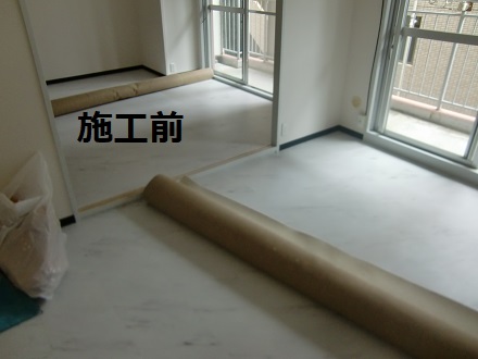 リビング、洋室のクッションフロアーの床に現地差し寸にて製作させていただきました