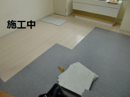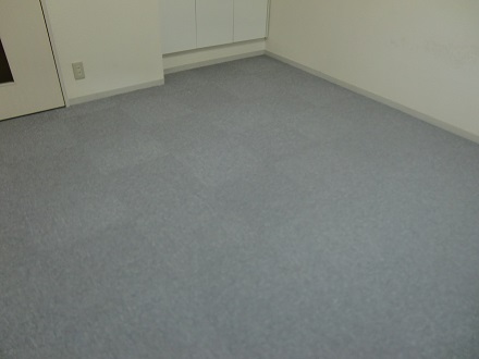 ワンルームのお部屋のフローリングの床にタイルカーペットを施工させていただきました♪