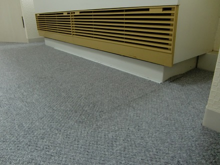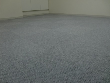 グレーのループタイプの抜け毛の出ないタイルカーペットにて。