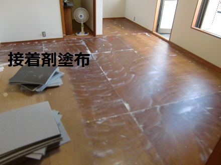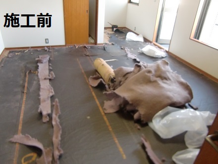 既存のカーペット(グリッパー施工)をはがし、下地処理を行い