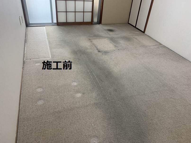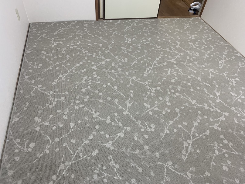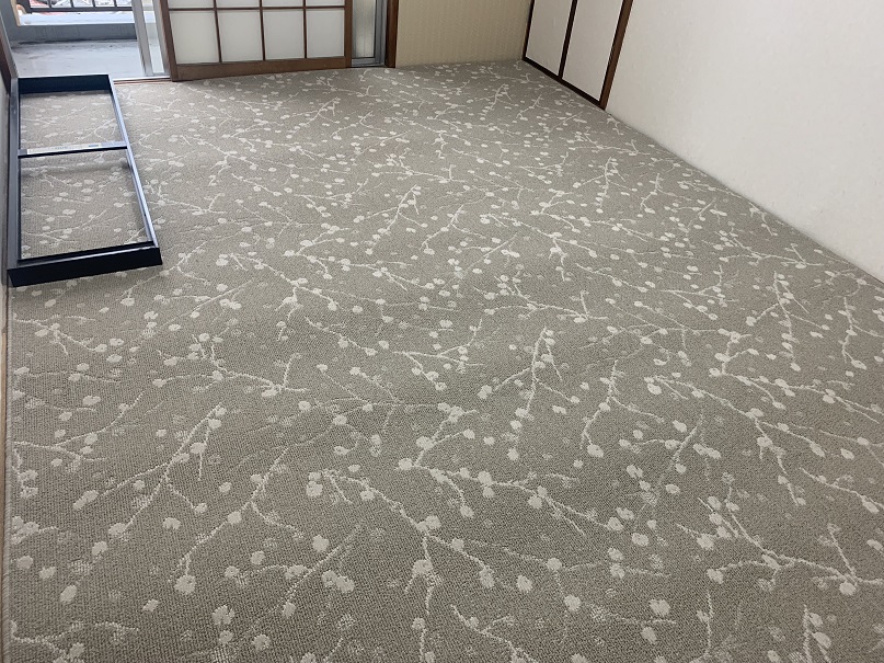 大阪市天王寺区 M様邸 カーペット施工例 和室の畳の上に現地採寸にて製作させていただきましたオーダーカーペットを施工させていただきました♪ 古いカーペットを剥がし掃除後に敷かせていただきました。 ㈱サンゲツ サンテンダー NDR-102 2560x3410㎜ 施工時間約15分
