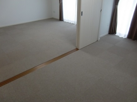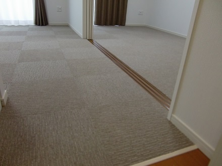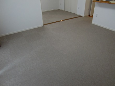 お引越し前にリビングとリビング横の洋間のフローリングの床にタイルカーペットを施工させていただきました♪