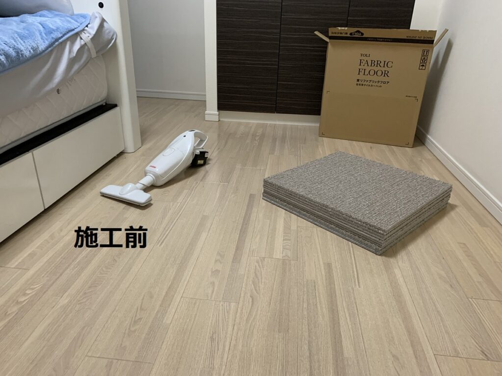 洋室のフローリングの床に接着剤いらずのタイルカーペットを施工させていただきました♪