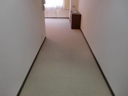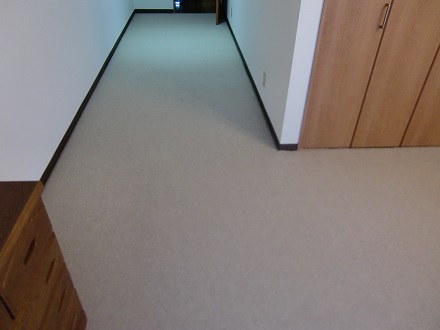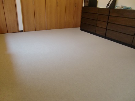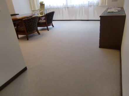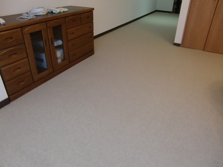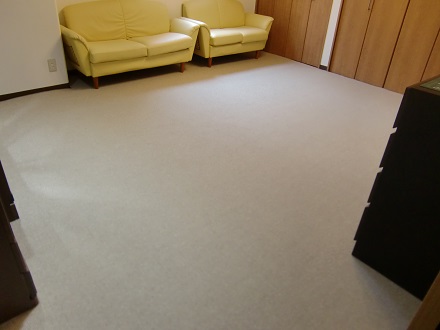 洋間2室のフローリングの床に現地採寸にて製作させていただきましたオーダーカーペットを