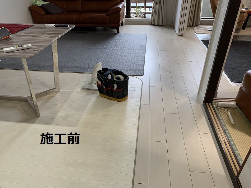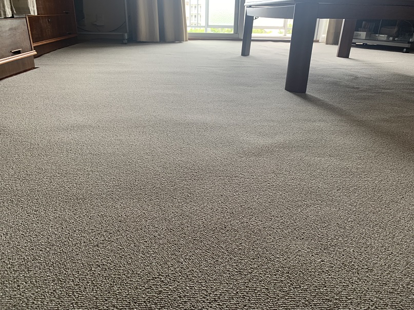 置き敷き施工で現状の床をはがさずにタイルカーペットと入れ替える改修工事にて