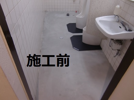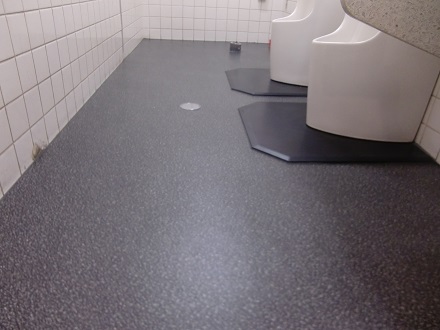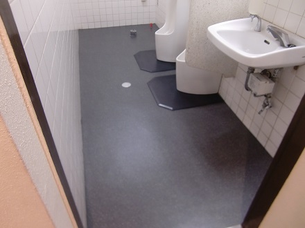 某店舗様のトイレの床に塩ビシートを耐水用の接着剤で施工させていただきました♪