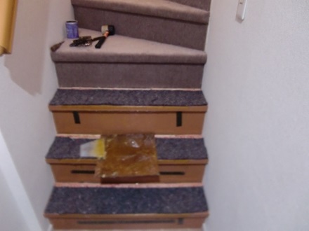大阪府箕面市 S様邸 カーペット施工例 階段にフェルトグリッパー+圧着貼りにてカーペットを施工させていただきました♪ 踏み心地抜群でさらに高級感も! サンゲツ サンフルティー FH-54 約7.8㎡ 施工時間約5時間