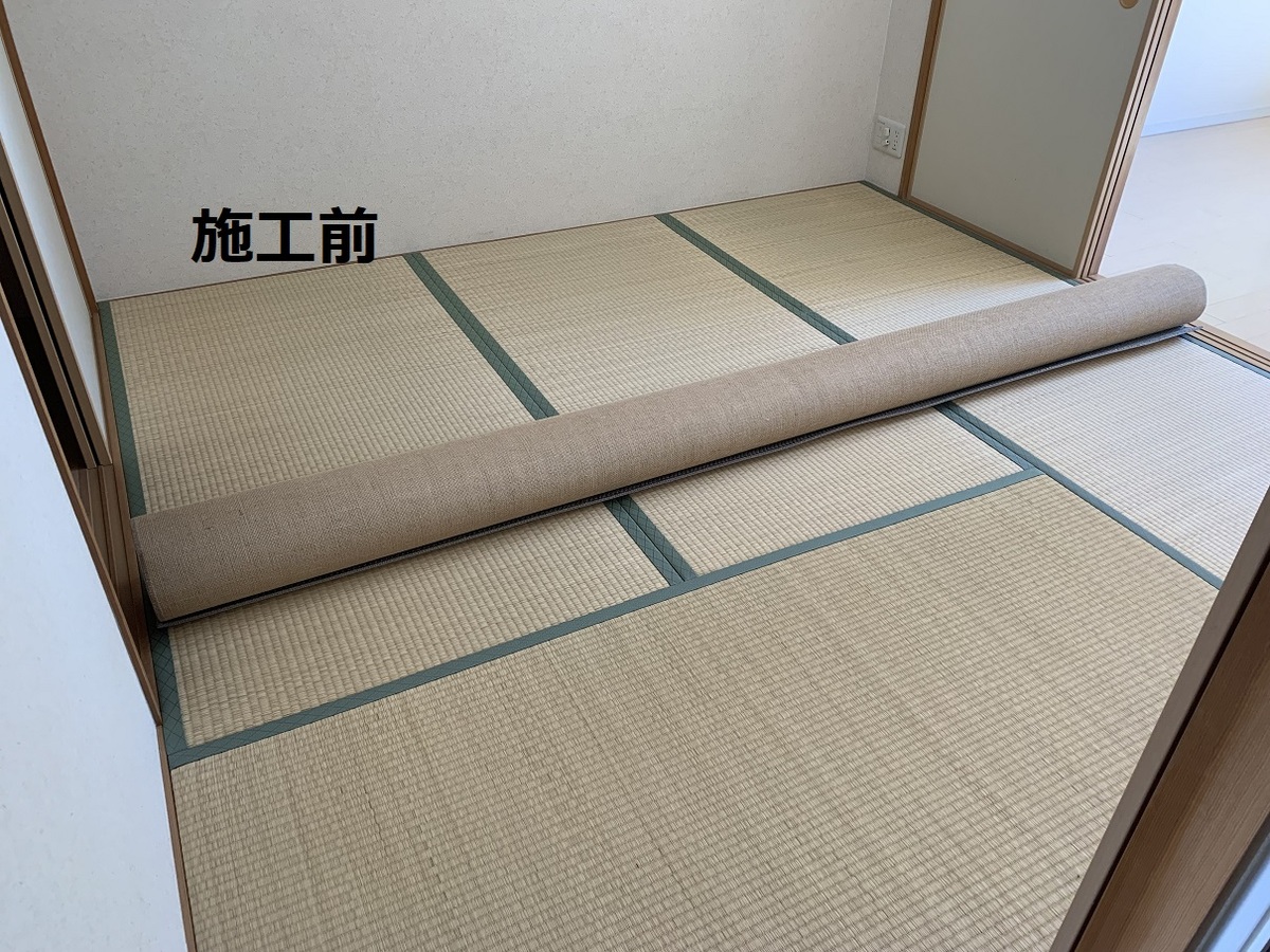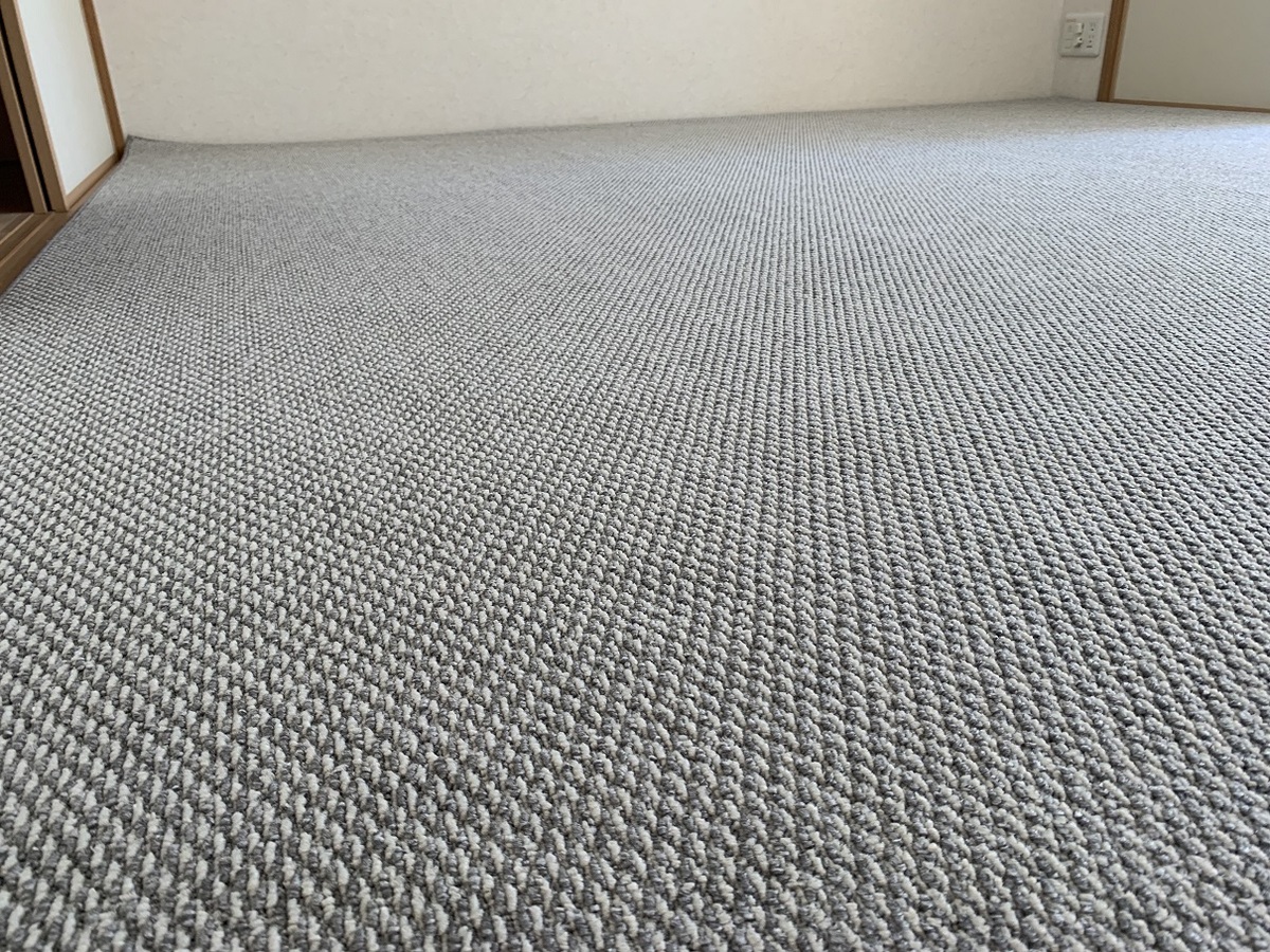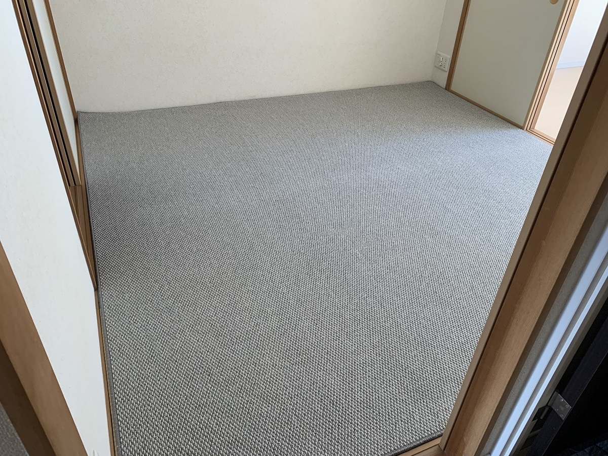 和室の畳の上に現地採寸にて製作させていただきましたオーダーカーペットを施工させていただきました♪
