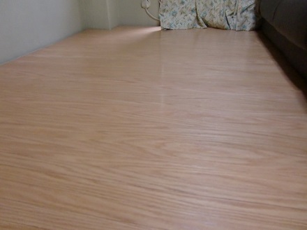 大阪市鶴見区 T様邸 ウッドカーペット施工例 和室の畳の上に現地採寸にて製作させていただきました ウッドカーペットを家具を移動しながら施工させていただきました♪ ウッドペッカーⅡ ナチュラル 2500x3420㎜変形 施工時間役30分ん