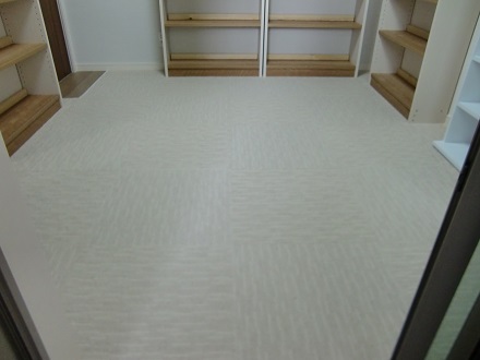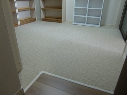 フローリングの洋間に接着剤いらずのタイルカーペットを施工させていただきました♪