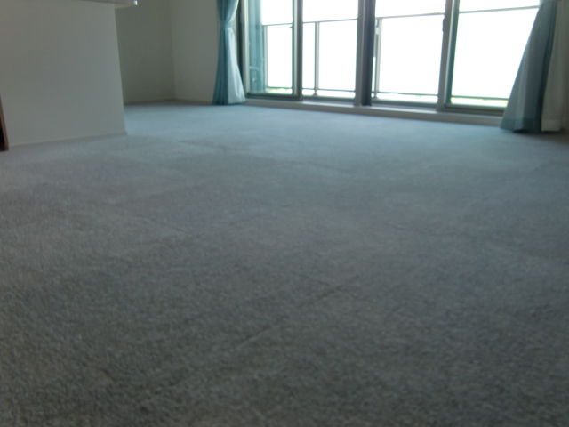 お引越し前にリビングのフローリングの床に接着剤いらずのタイルカーペットを施工させていただきました♪