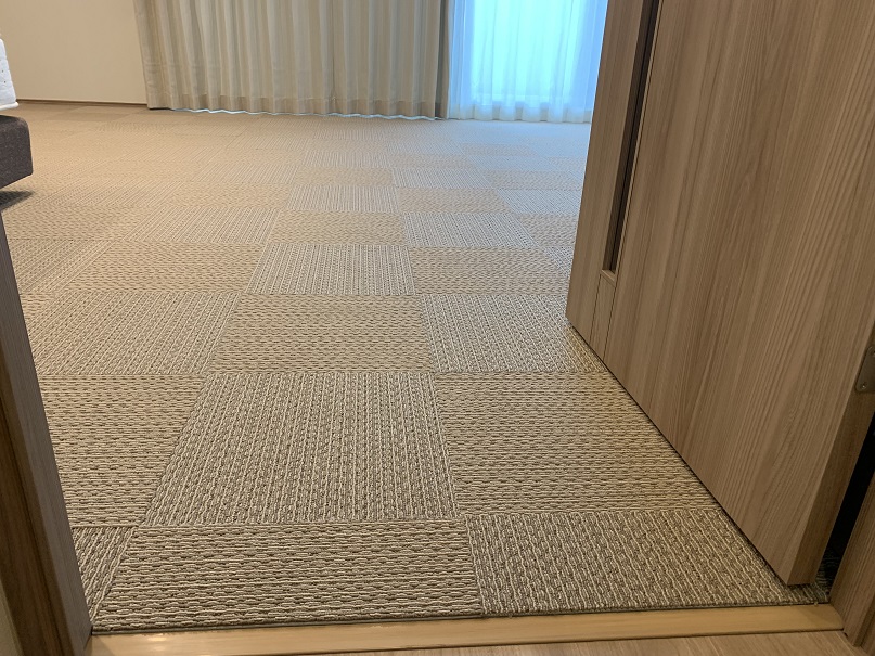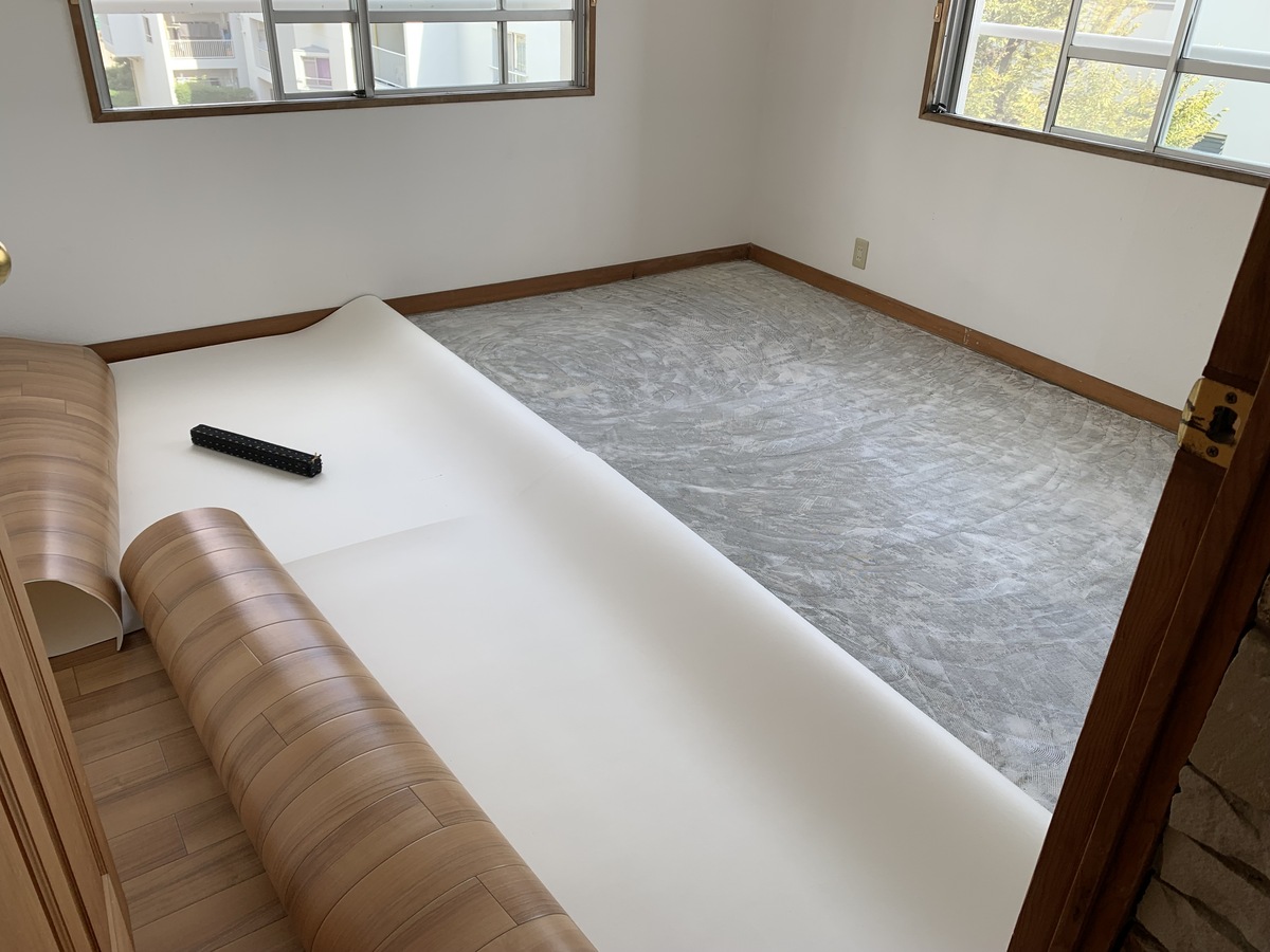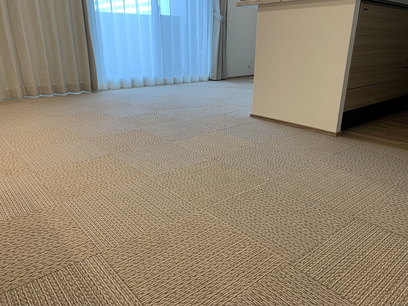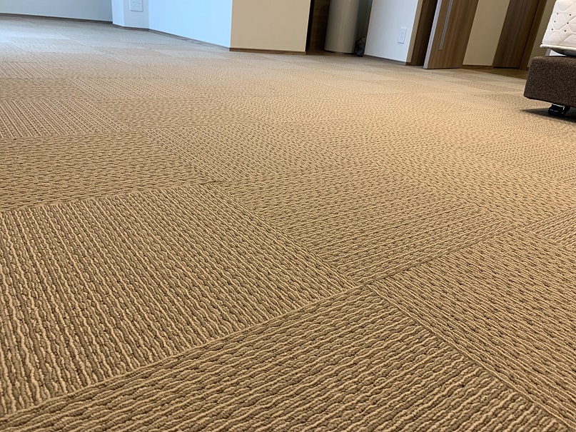 和室に現地採寸にて製作したオーダーカーペットを家具を移動しながら施工させていただきました♪