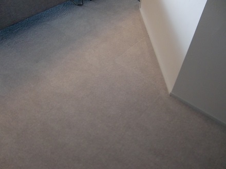 シリーズの中でも一番肌触りの良い綿毛のような質感のカットパイルのタイルカーペットにて。