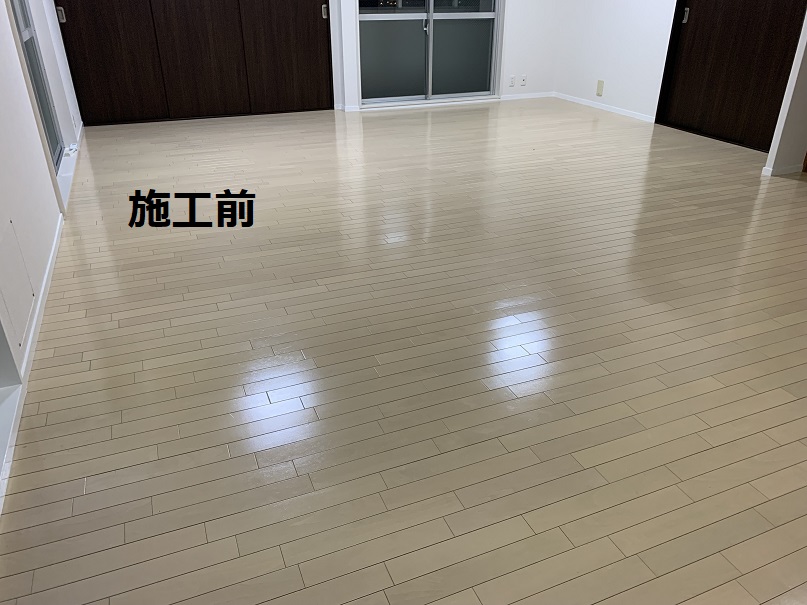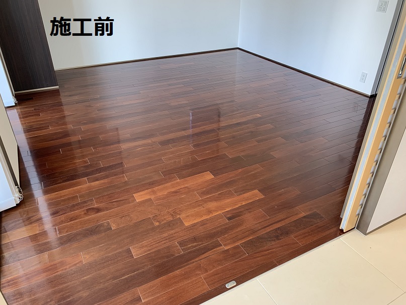 LDKのフローリングの床に家具を移動しながらタイルカーペットを施工させていただきました♪