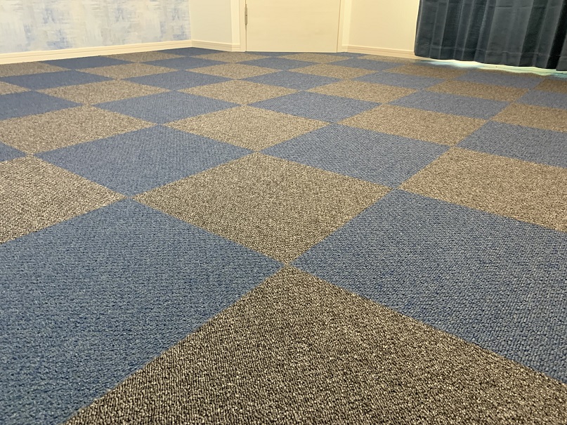 2色の色違いのカーペットを市松貼りにて。